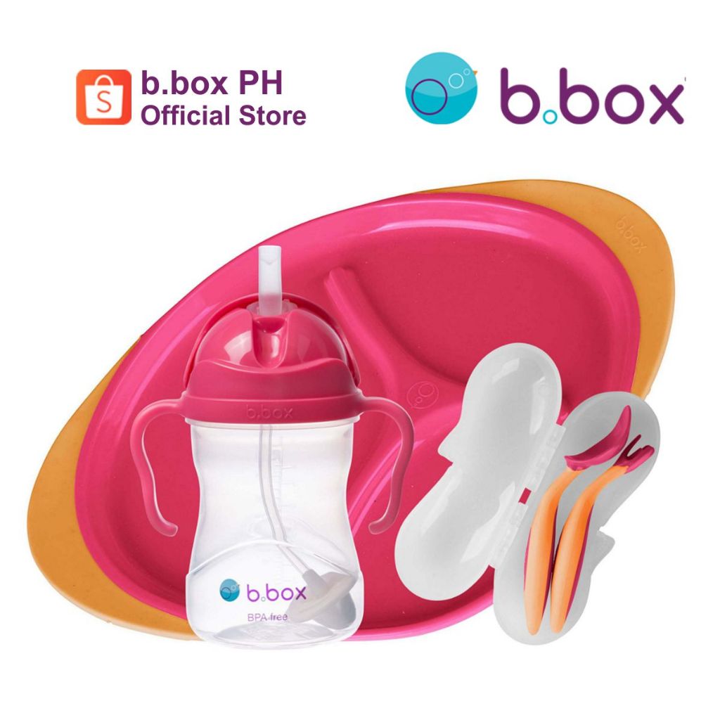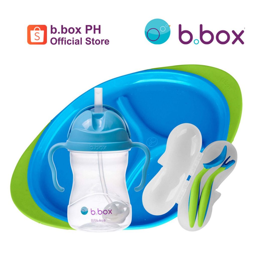 bbox Feeding Gift Set ( Includes Sippy Straw Cup, Toddler Cutlery Fork Spoon Set , Divided Plate )
