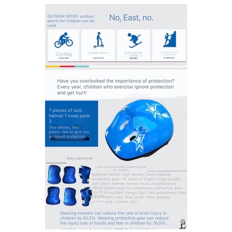 bike helmet protective safety gear 7 pcs set sliding roller skating scooter knee pad for kid