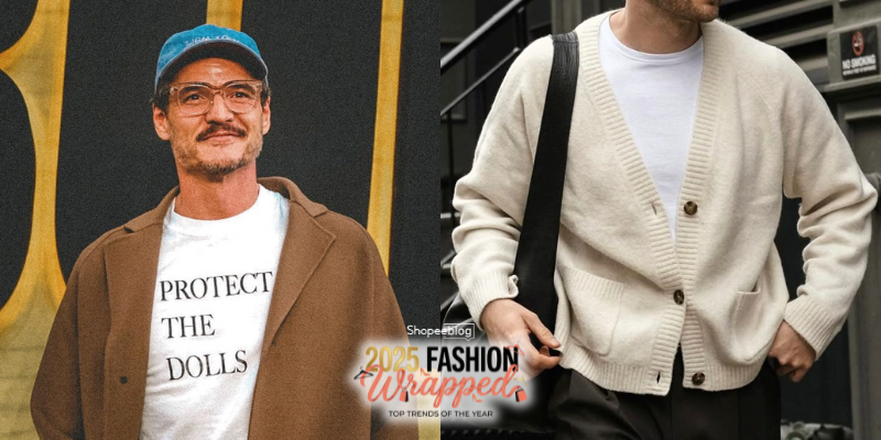 Pedro Pascal, our collective “Internet Daddy,” taught a masterclass in relaxed confidence. He popularized the “Soft Boy” evolution—where the Voluminous Cardigan replaced the stiff blazer. We saw men embracing pearl necklaces, slouchy fabrics, and a palette of sage and cream.
