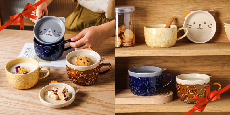 2. Vintage Japanese-Style Ceramic Mug (w/Noodle Cup Lid)