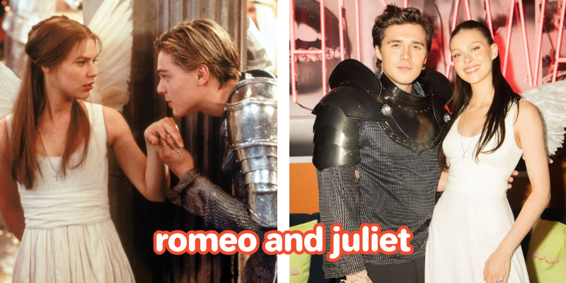 Forget horror; this one is for the epic romantics. This costume is a direct nod to the iconic party scene from the 90s Leonardo DiCaprio classic, and it’s pure magic. One of you becomes the valiant knight in shining armor, ready to steal glances from across the room, while the other transforms into a celestial angel, complete with a flowing white dress and a pair of wings.
