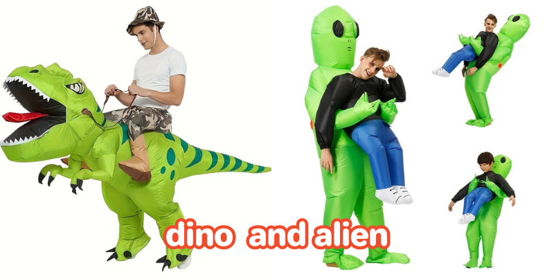 What happens when a UFO abducts a T-Rex? This hilarious, mismatched duo is a guaranteed conversation starter. One of you can stomp around in an inflatable dinosaur costume (the T-Rex is a classic!), while the other explores the inflatable alien costume. It’s the ultimate prehistoric-meets-futuristic pairing