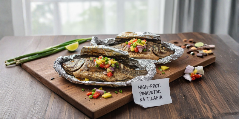 Tilapia is an affordable, accessible, and lean protein source in the Philippines. Pinaputok (which means “to burst”) is an “easy” cooking method that involves stuffing the fish with aromatics and baking it in a foil packet. The foil traps the steam, infusing the fish with flavor with minimal active cooking.