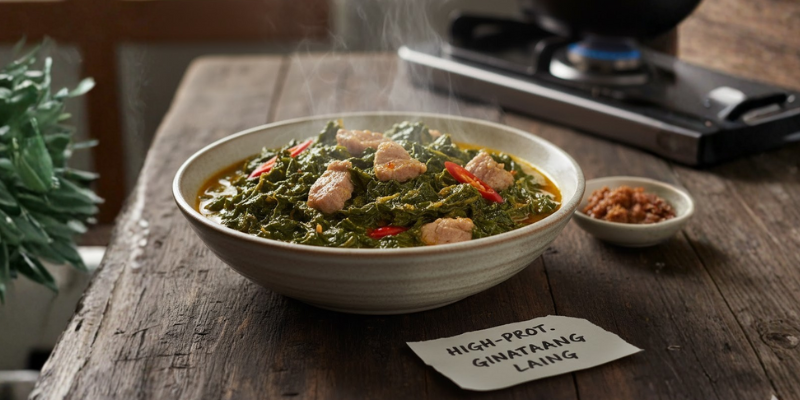 📌Note: While coconut milk is high in (healthy) saturated fats, this dish is a high-protein, high-fiber, and low-carbohydrate ulam. The pork provides substantial protein, and the taro leaves are an excellent source of dietary fiber. This can be a very effective, satiating meal for those on a low-carb or ketogenic diet.