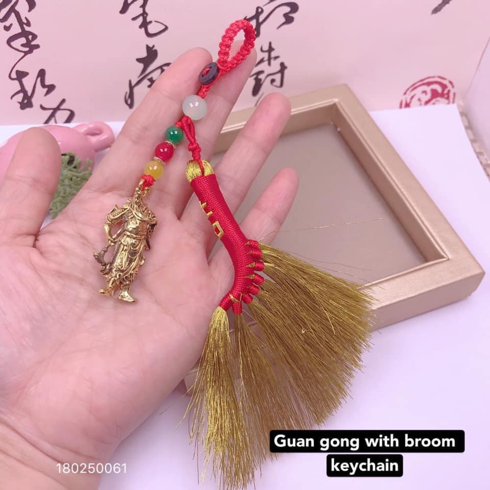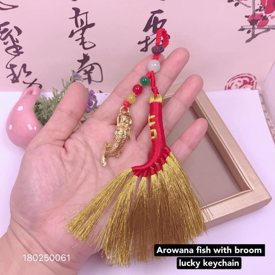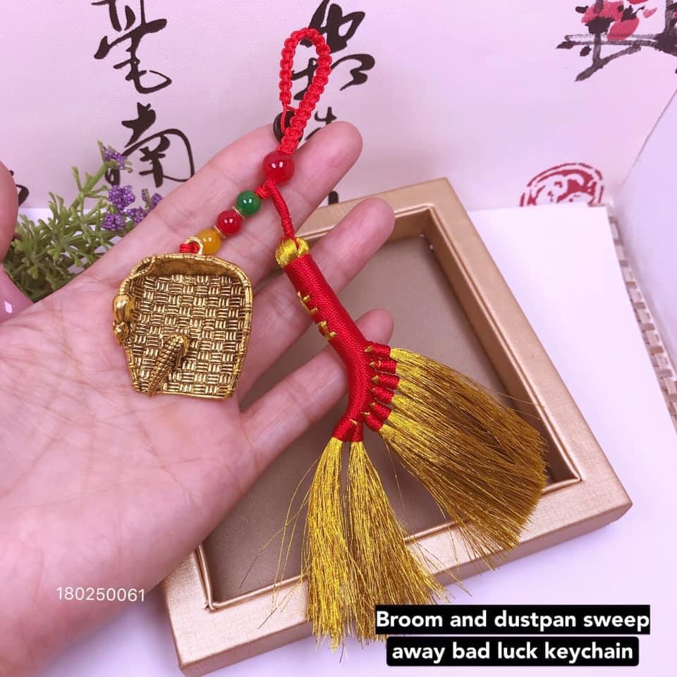 broom with lucky sign sweep away bad luck keychain