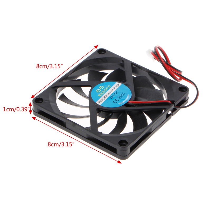24V 2-Pin 80x80x10mm PC Computer CPU System Heatsink Brushless Cooling Fan 8010