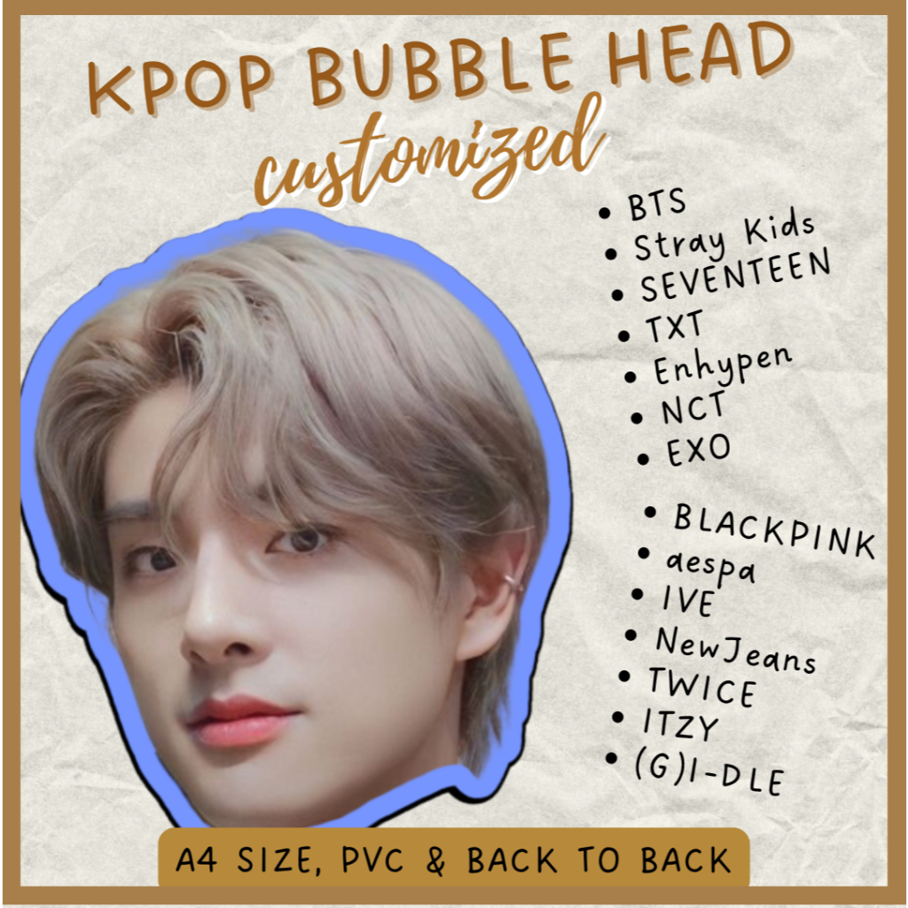 bubble head kpop pvc a4 size can customize (enhypen, bts, sb19, bini, blackpink, exo & more)