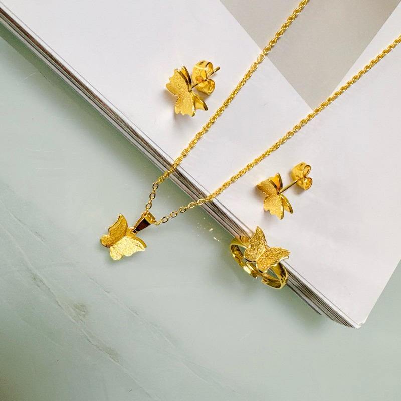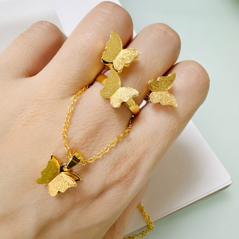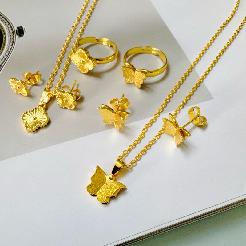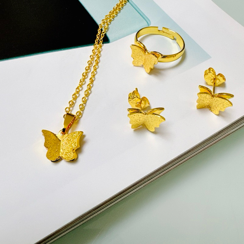 buy 1 take 1 18k bangkok fashon jewerly plated butterfly flower 3in1 set