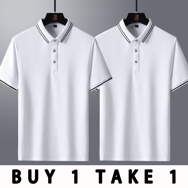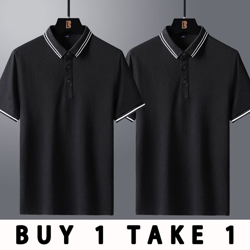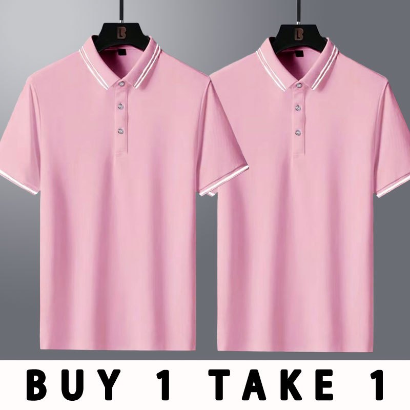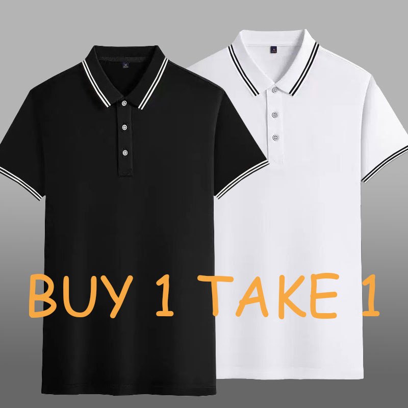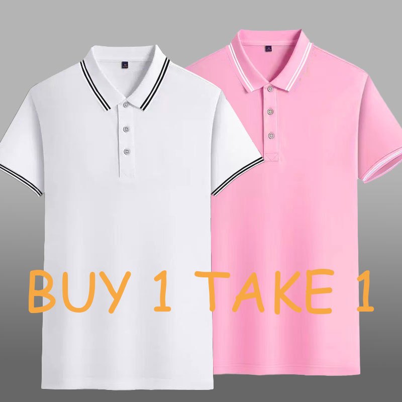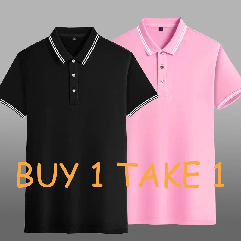 buy 1 take 1 polo shirt unisex fashion solid color poloshirt short casual for women and men striped