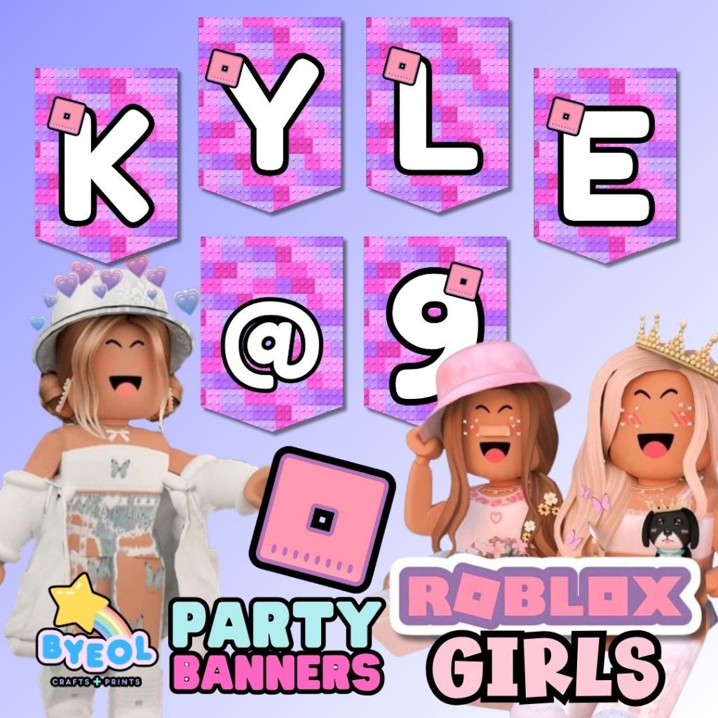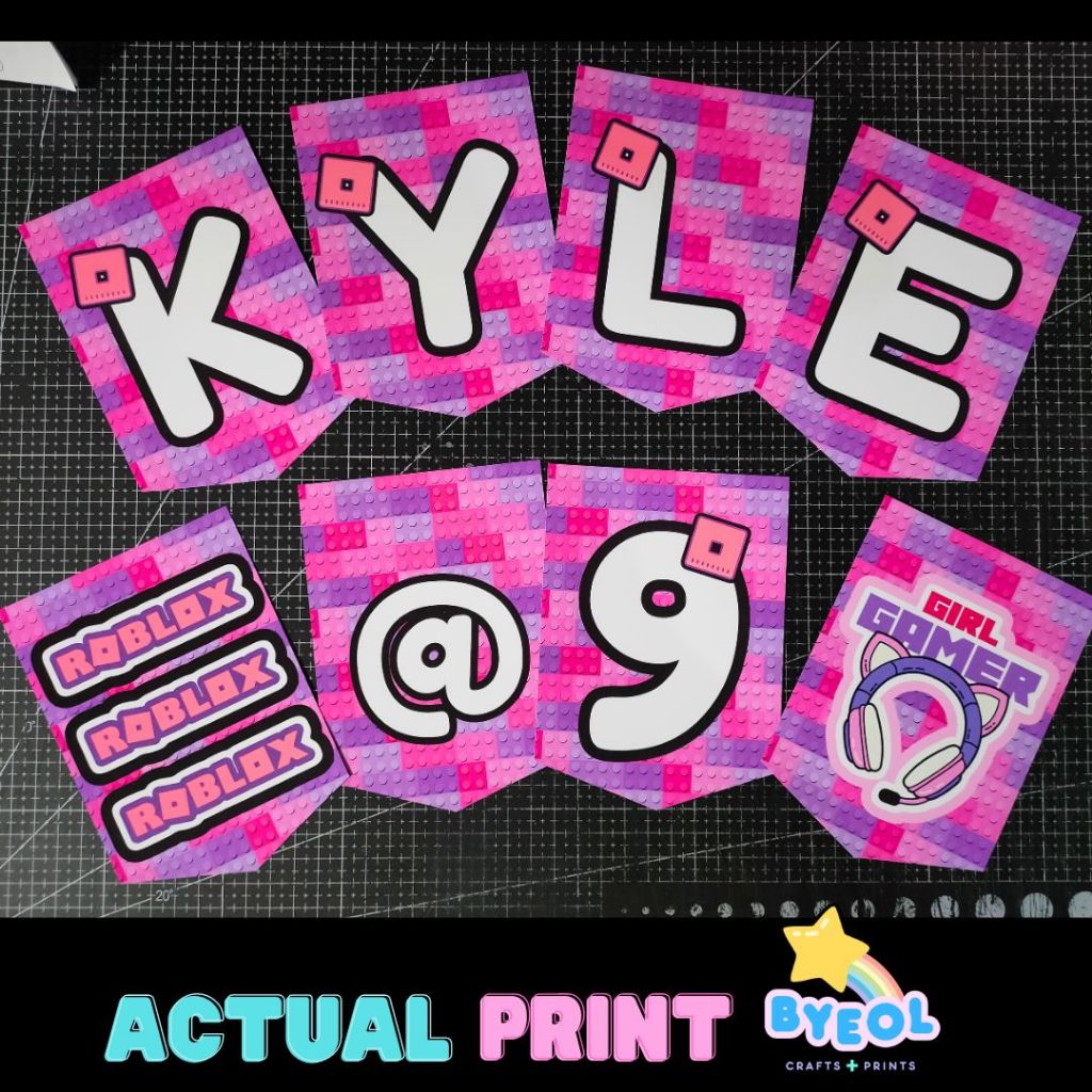 ROBLOX-PINK INSIRED byeolprints CUSTOMIZED LETTERS BIRTHDAY PARTY BANNER w/ string