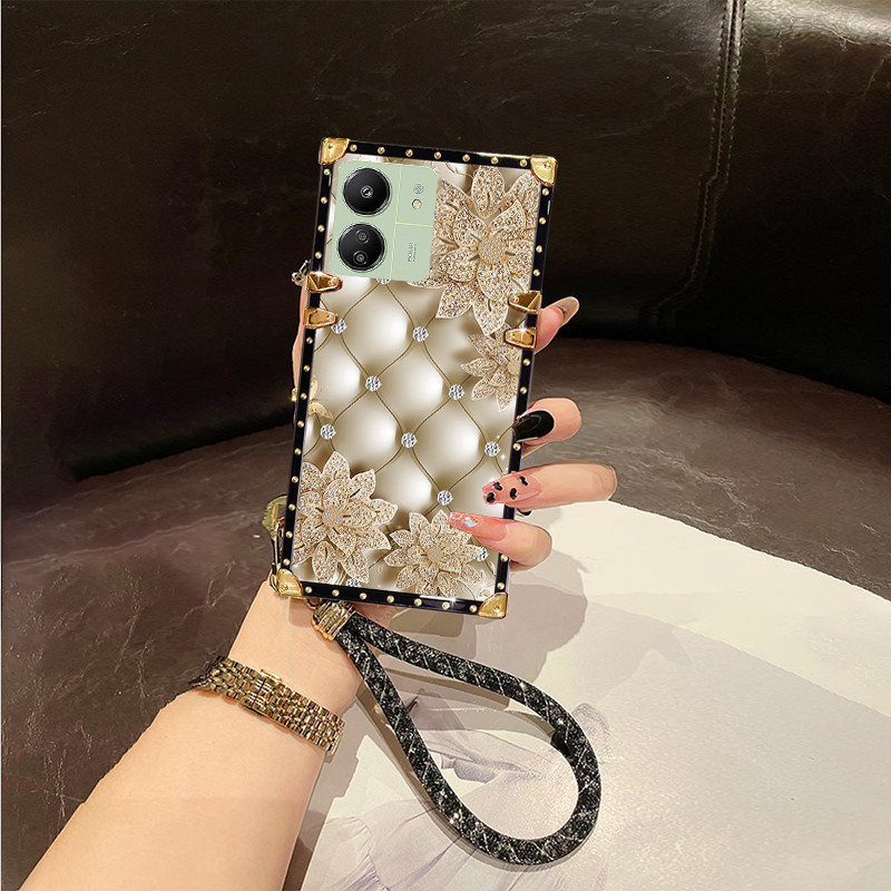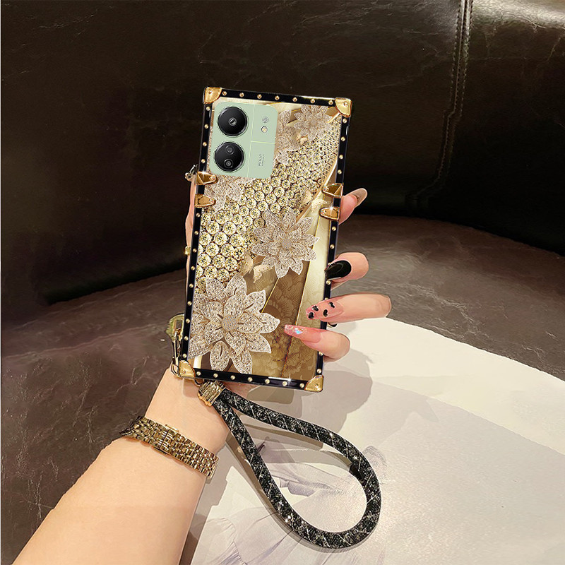 casing Fro Xiaomi Redmi 13C 12C 4G 5G phone case Luxury Printed pattern flash hand rope shockproof caser