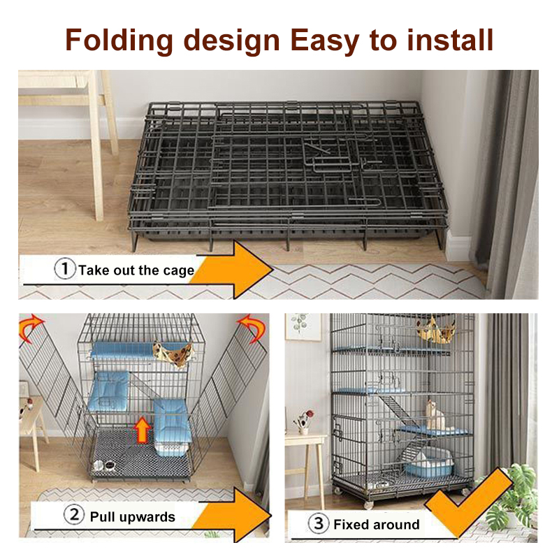 cat cage 3 layer/4 layer heavy duty cat house Foldable Sturdy Pet Furniture pet cage with Wheels