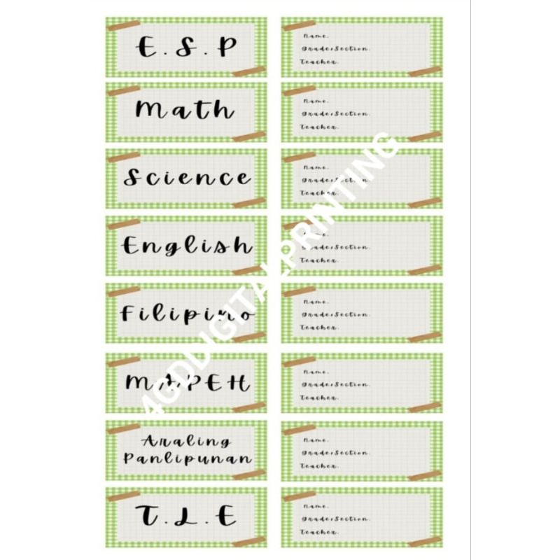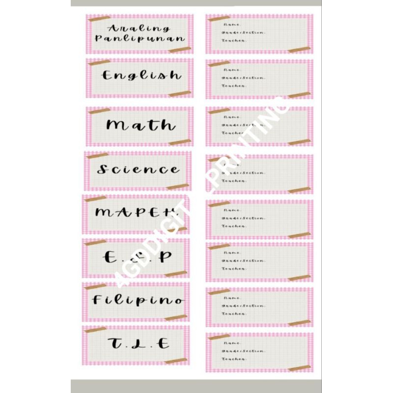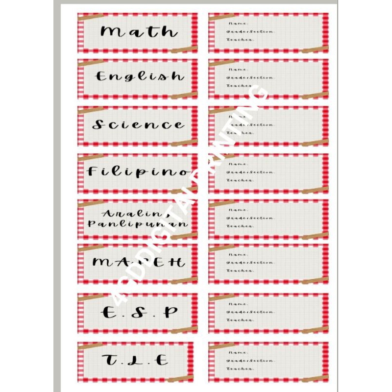 checkered style subject & name label (writable)