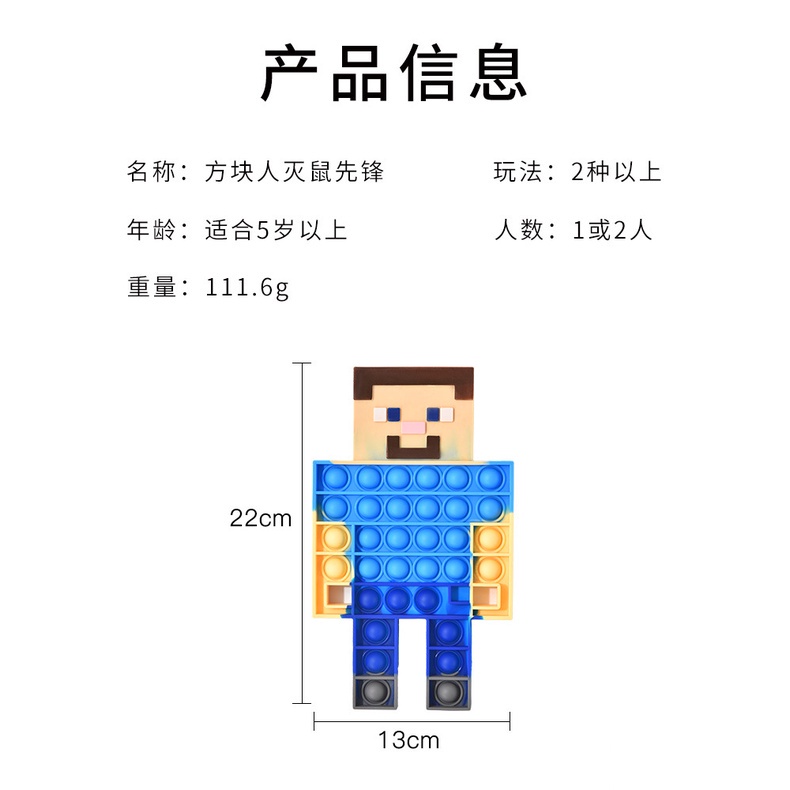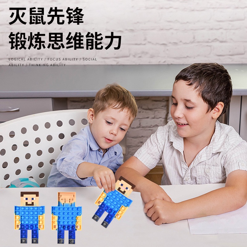 clearance! Minecraft POP IT Fidget Toys Steve Silicone Toys Push Bubble Sensory Poppit Stress Relief Educational Toys