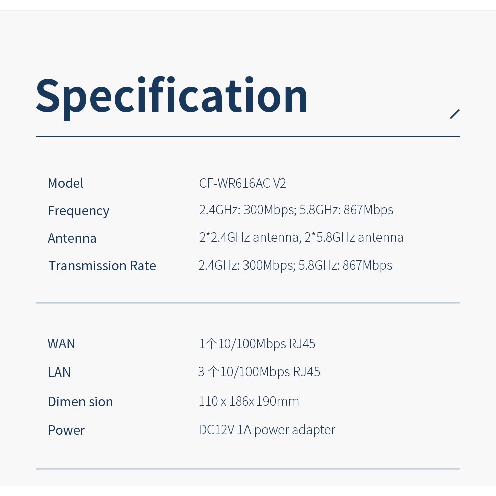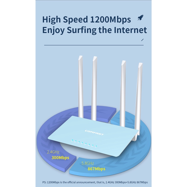 comfast 1200Mbps Wifi Router AC11 2.4GHz 5.8GHz Dual-Band Wireless Router WAN LAN WPS with 4 High Gain Antennas For Home CF-WR616AC V2