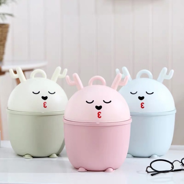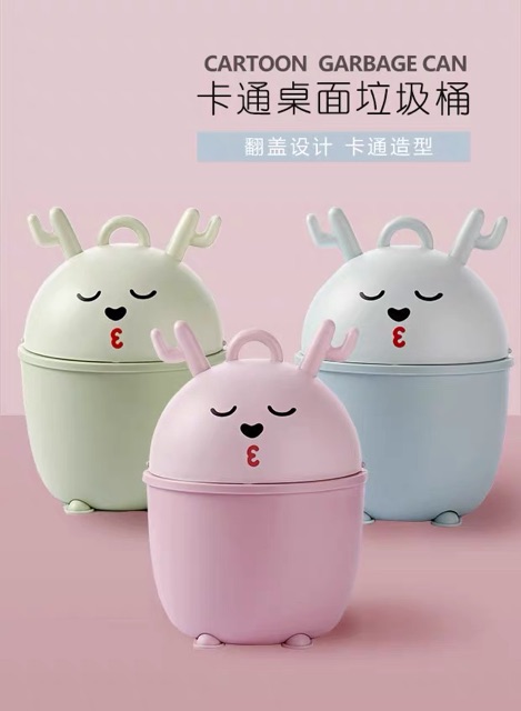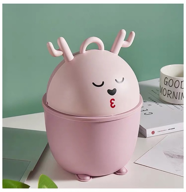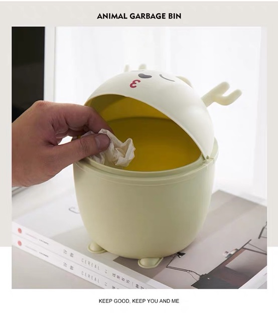 creative mini trash can desktop cartoon flip plastic debris