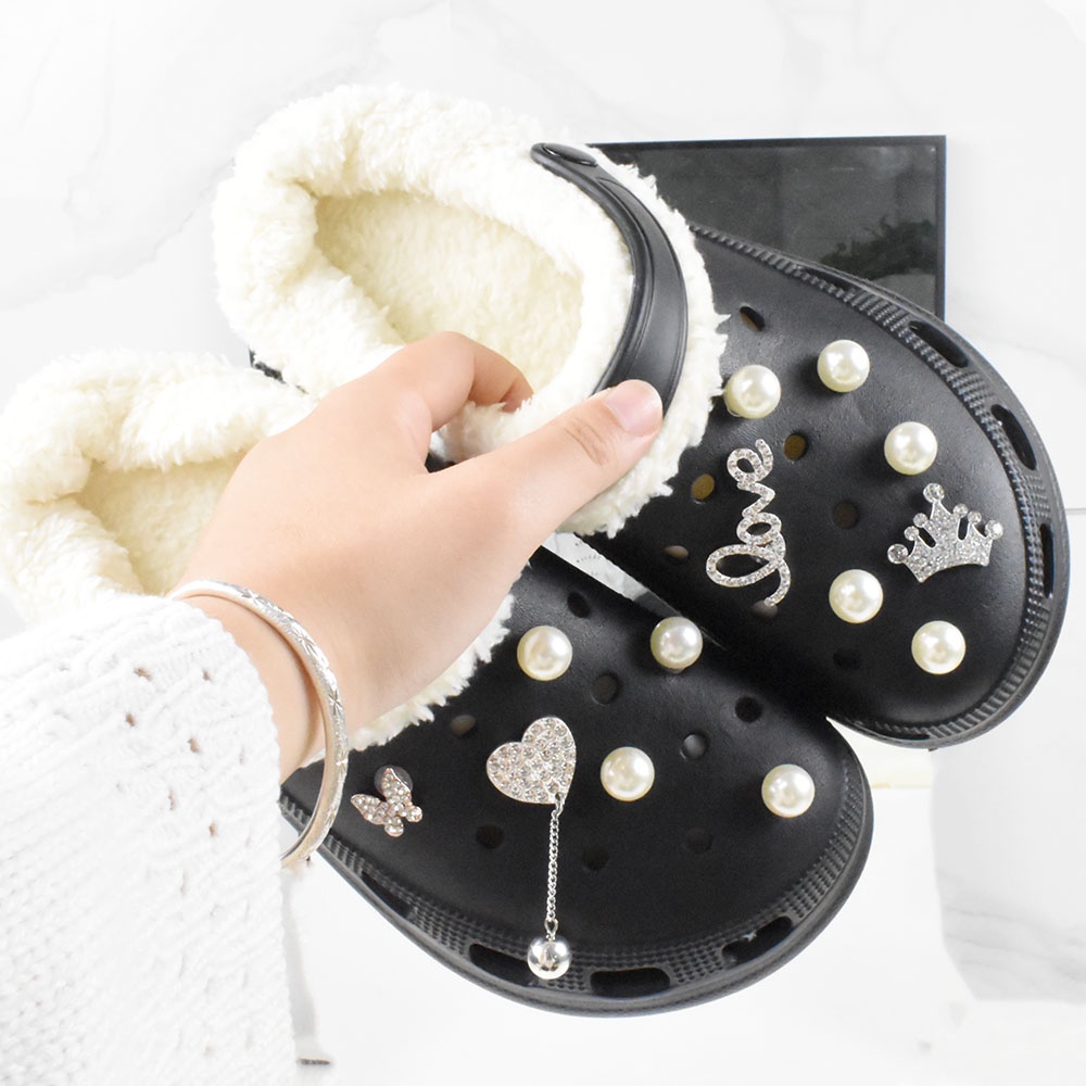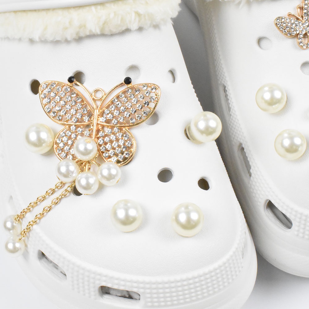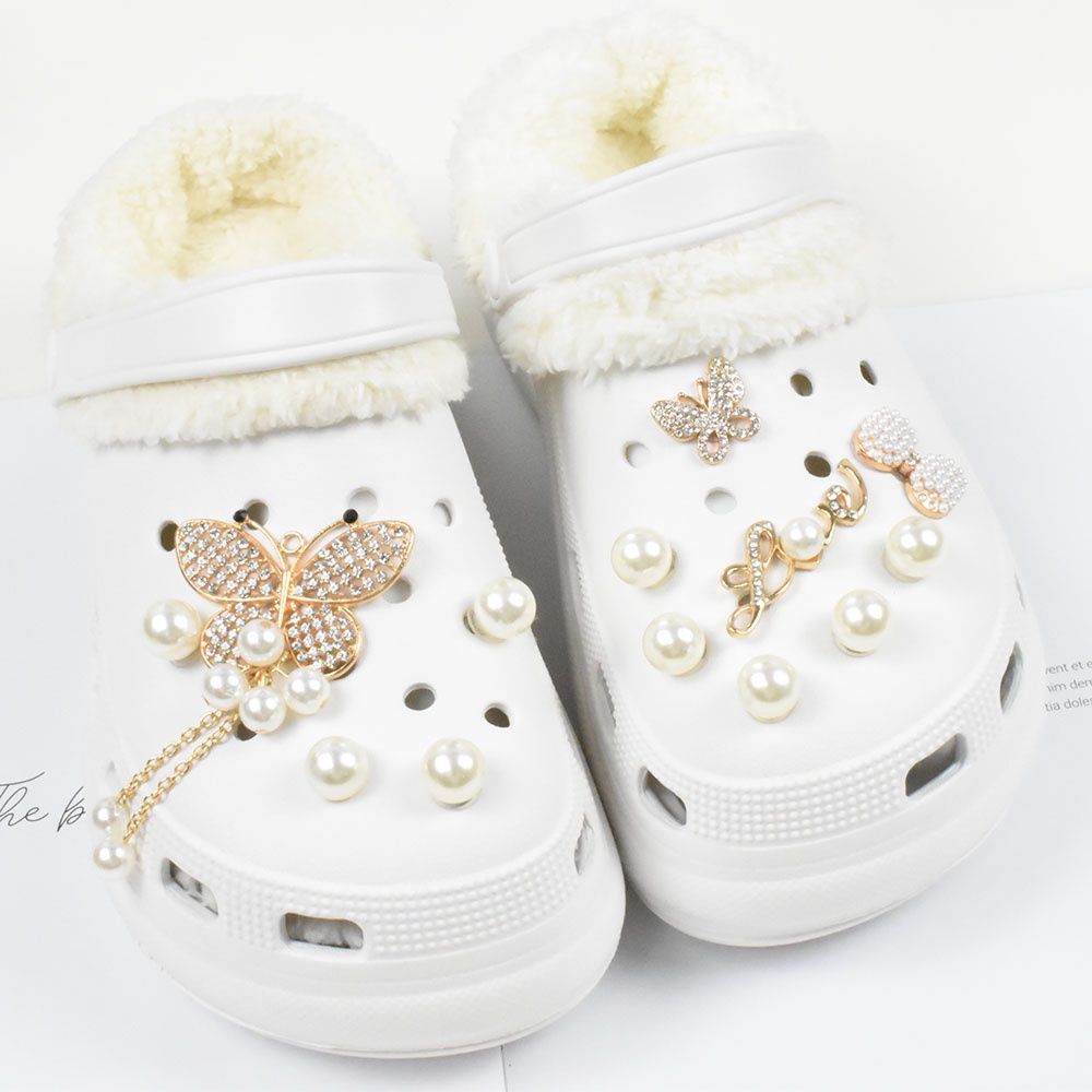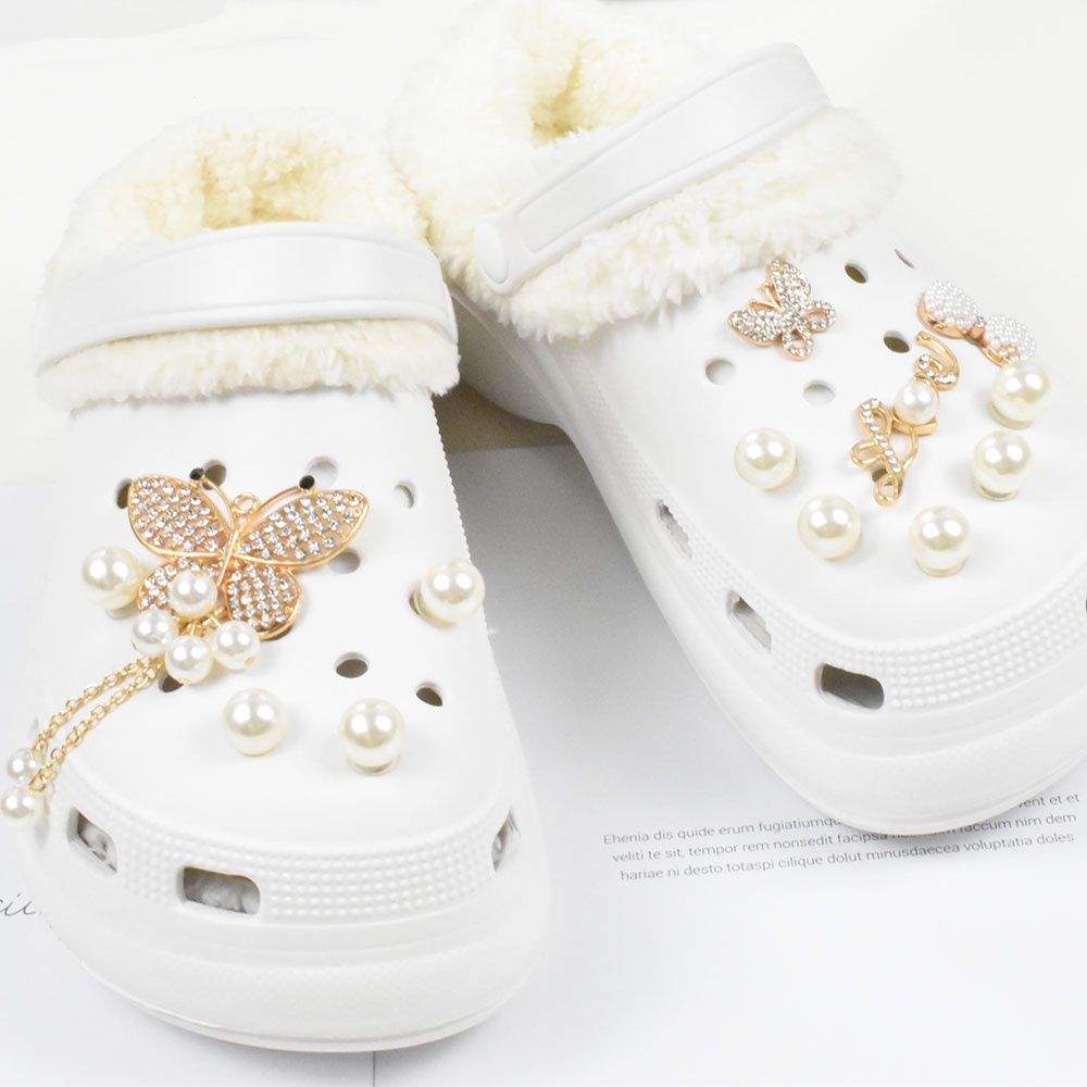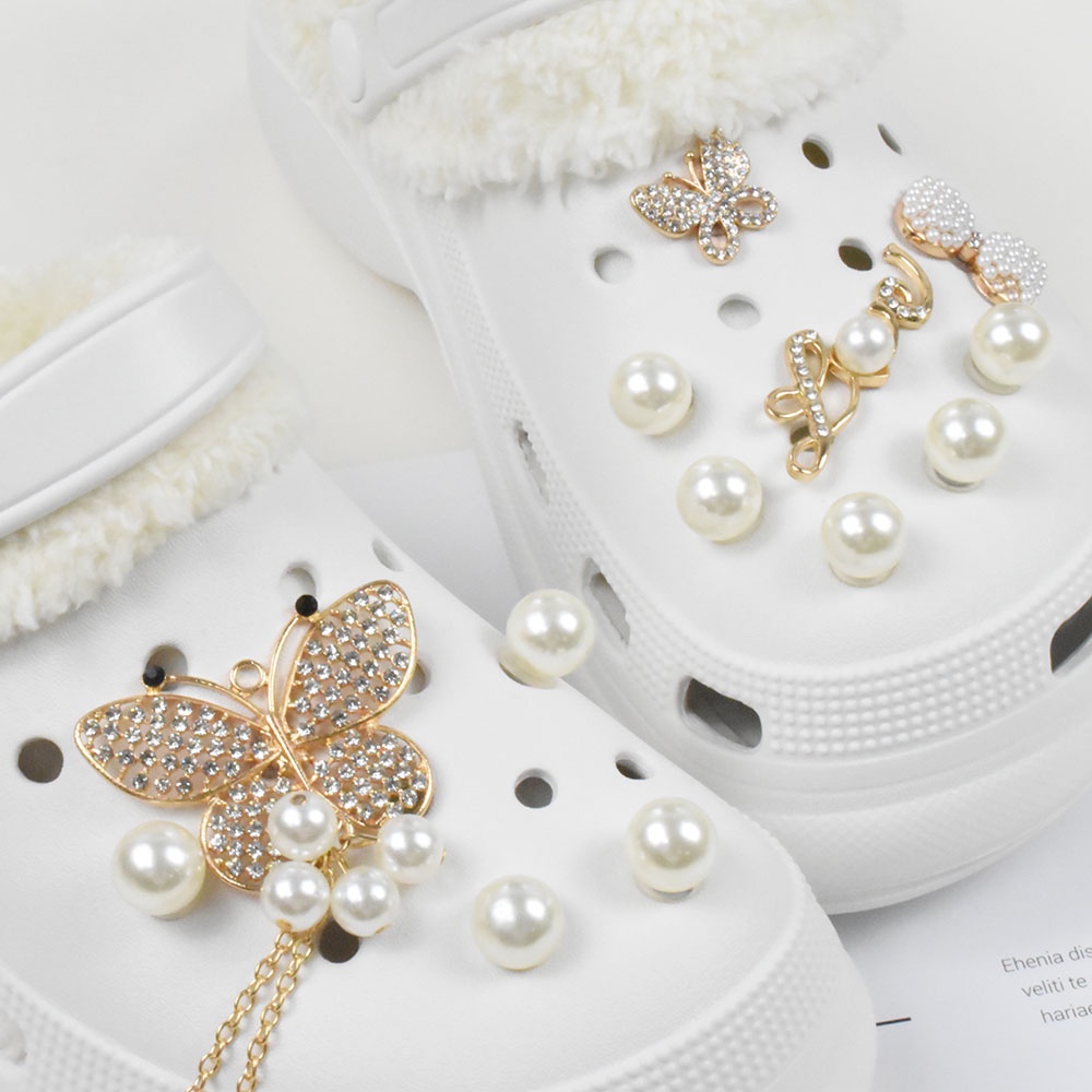 design Accessories Charms Set Pearl Crown design jibits Charm Hole Shoes Decorations Crystal Heart Butterfly Metal Charms Pins