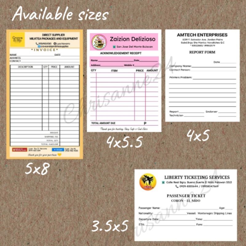 customized / personalized generic receipt carbonless
