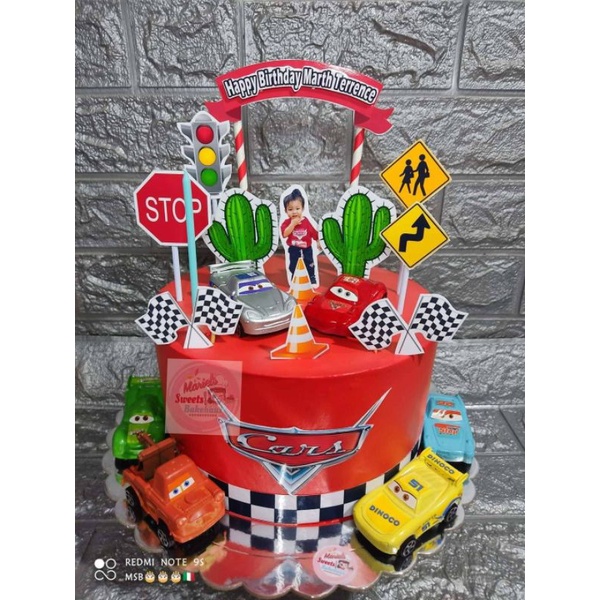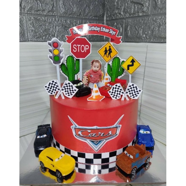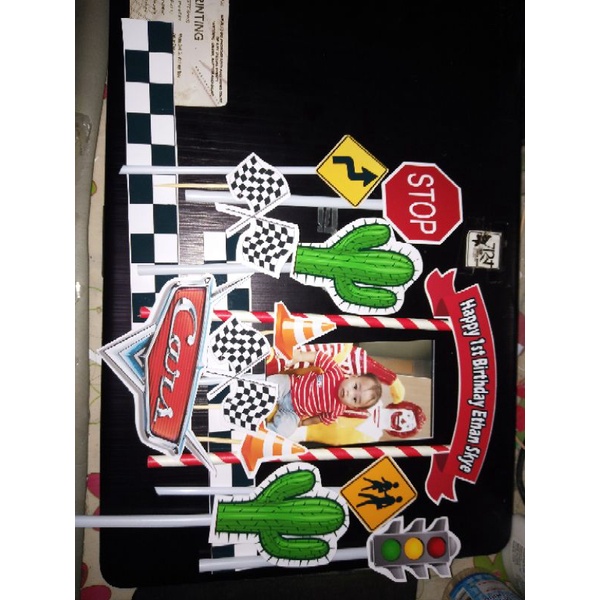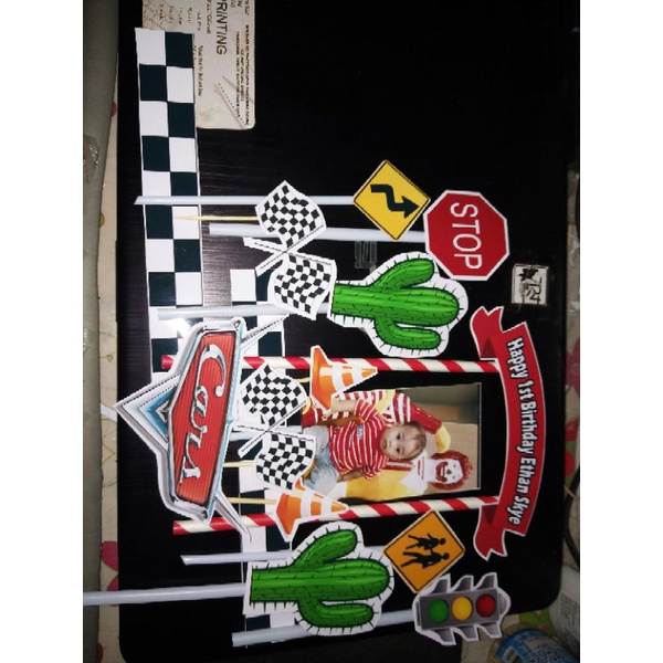 customized photo printed cars flag red mcqueen cake toppers