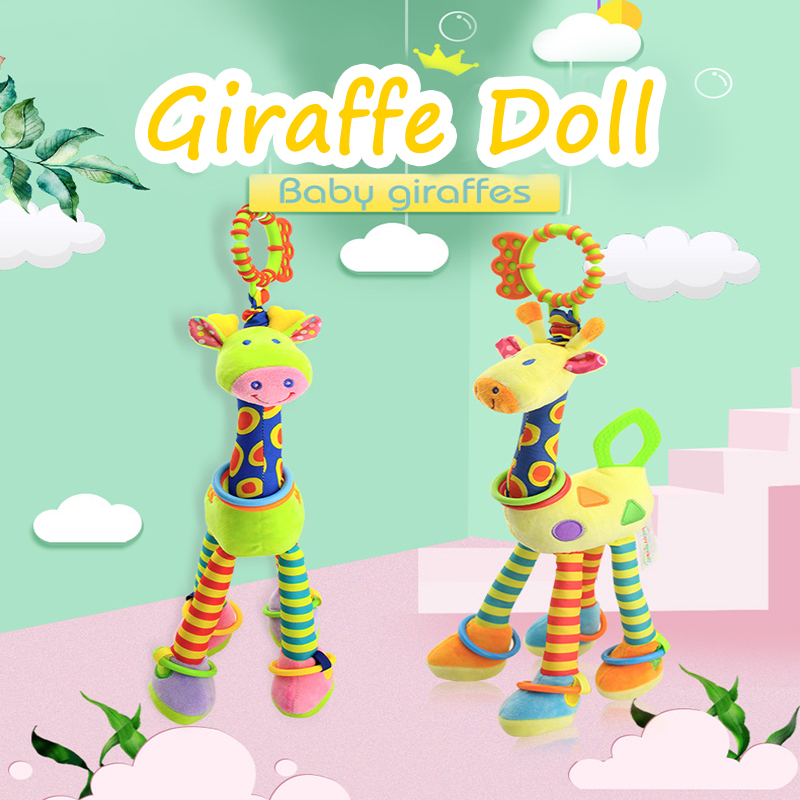 Cute Baby Development Soft Giraffe Animal Hand Bell Rattle Plush Giraffe Toy
