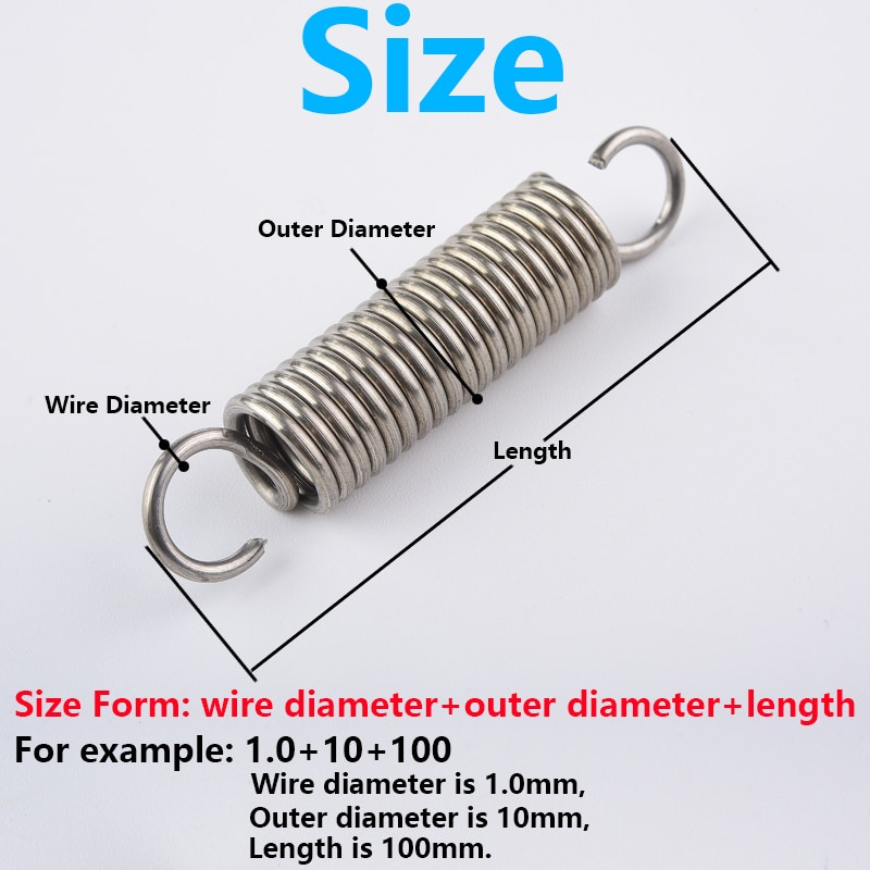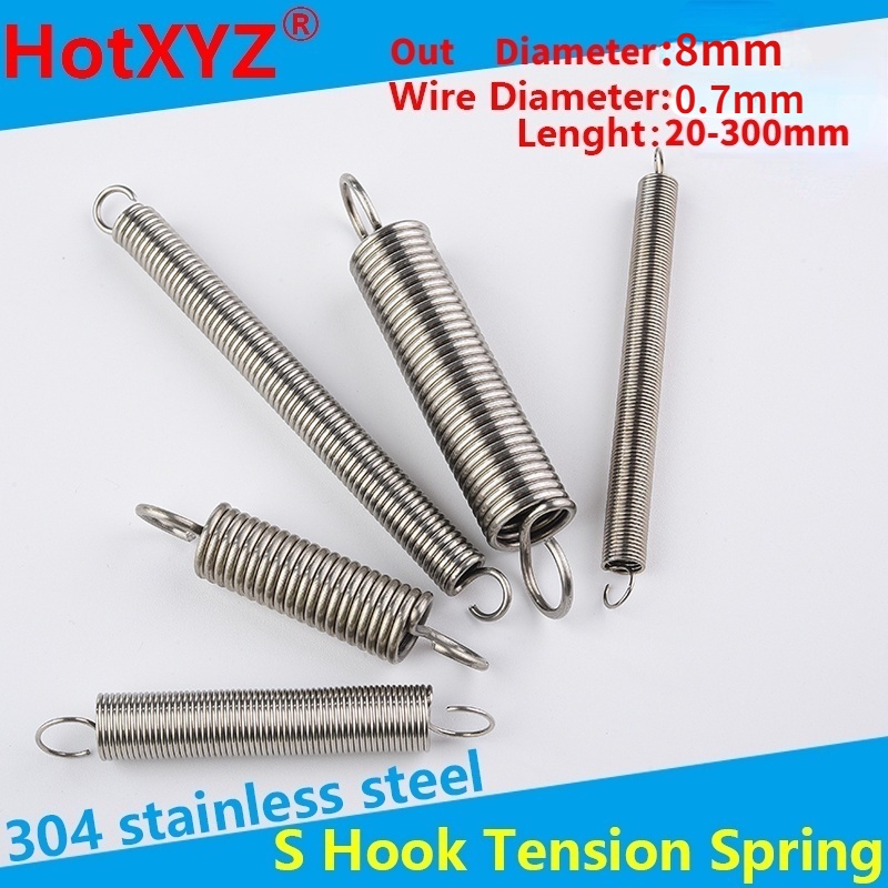 d0.7*D8*L20-300mm 304 Stainless Steel S Hook Cylindroid Helical Pullback Extension Tension Coil Spring