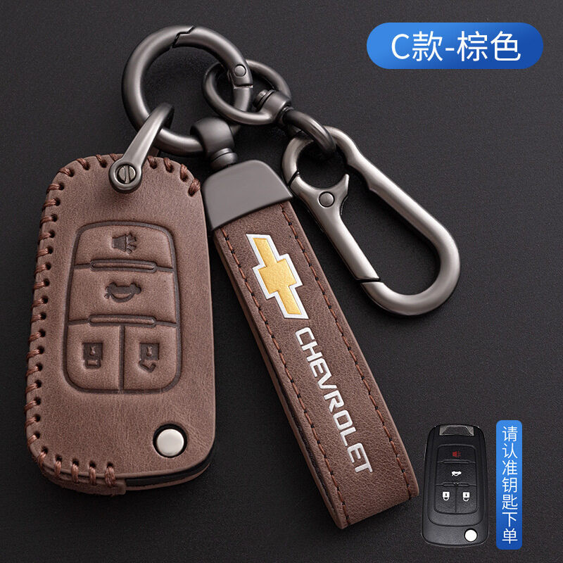 e Leather Flip Car Key Fob Case Cover For Chevrolet Chevy Cruze Spark Sonic Sail Trailblazer Malibu Volt Bolt Trax Captiva Spin Aveo Colorado Camaro Equinox Impala Orlando Smart
