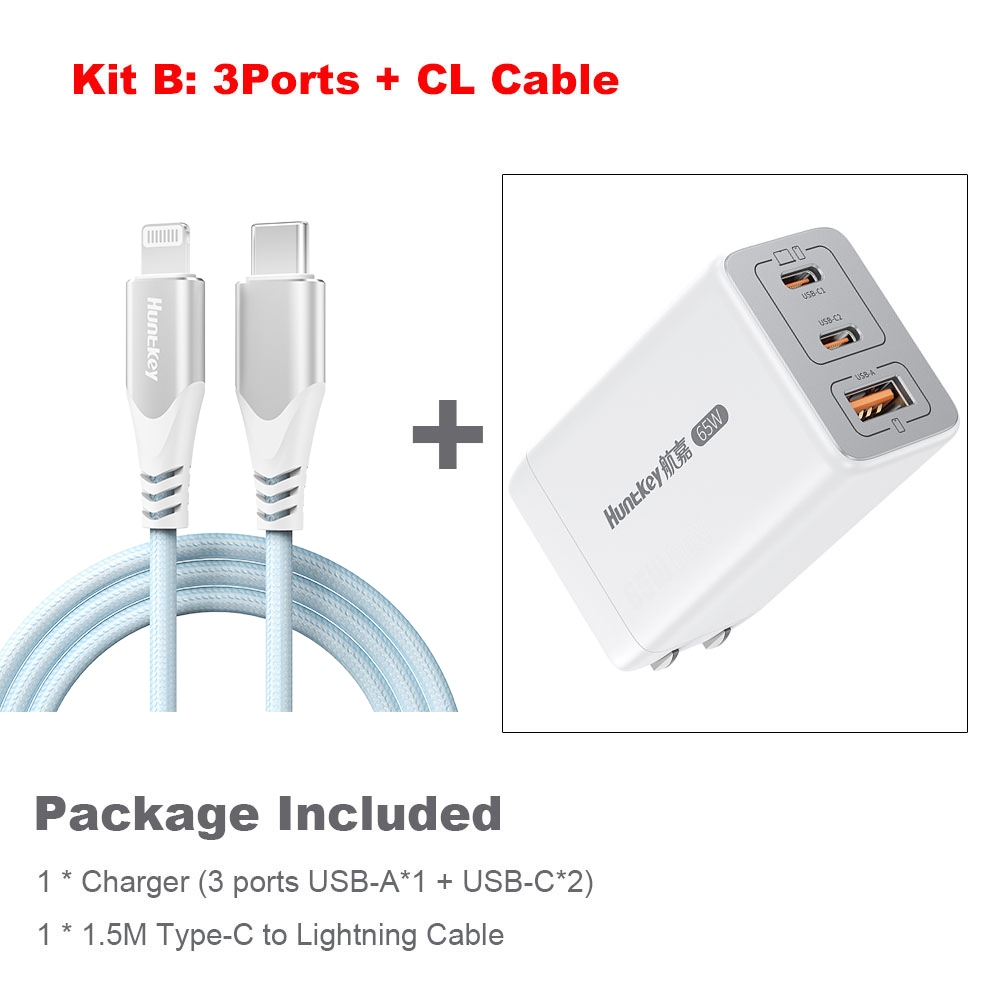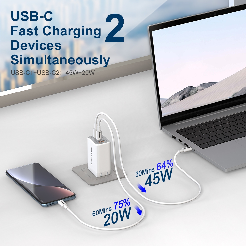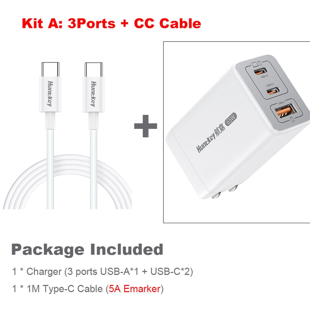 Huntkey 65W Fast Charger Type C Charging GaN Adapter for Phones Laptops with Dual Ports for MacBook Pro/Air for iPad for iPhone for Samsung
