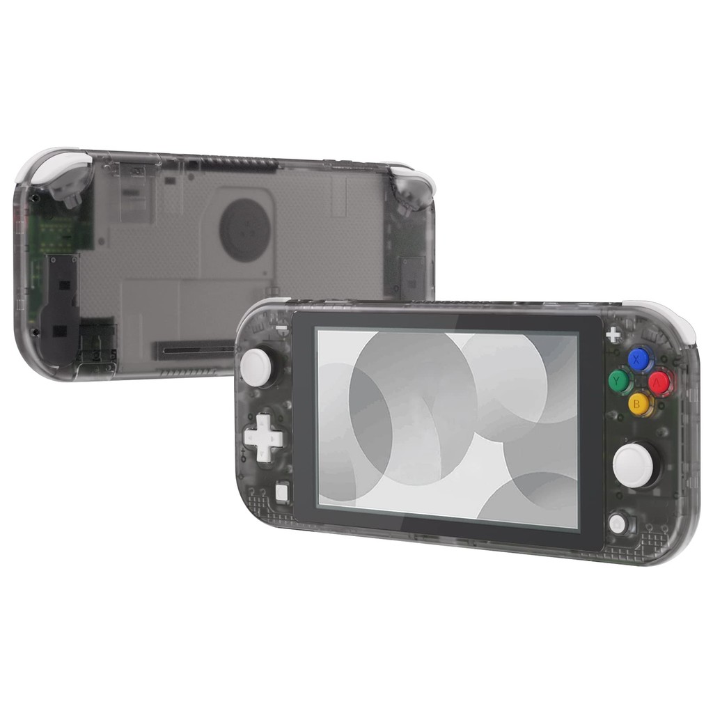 eXtremeRate DIY compatible case shell made of clear material for switch lite, Nintendo switch lite controller repair kit with housing/screen film, custom case cover for switch lite [clear black]
