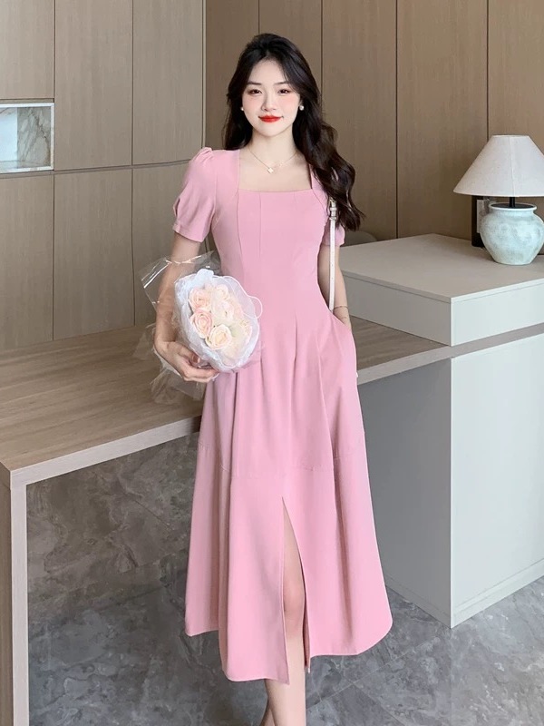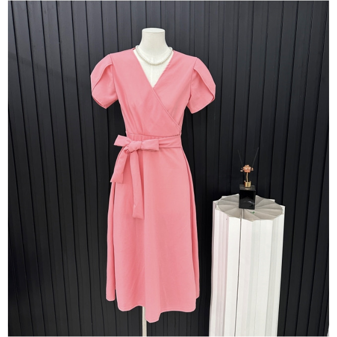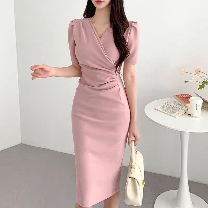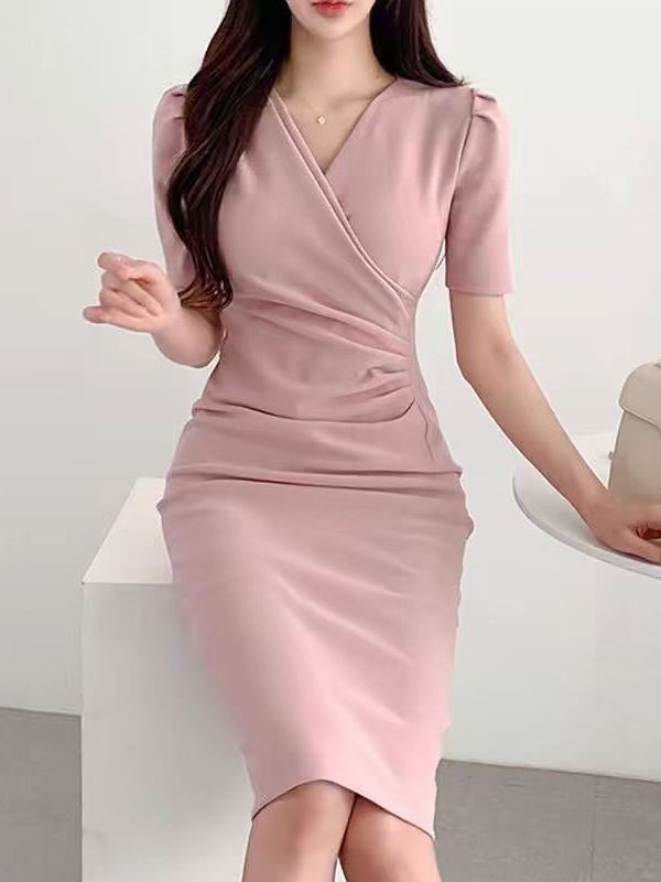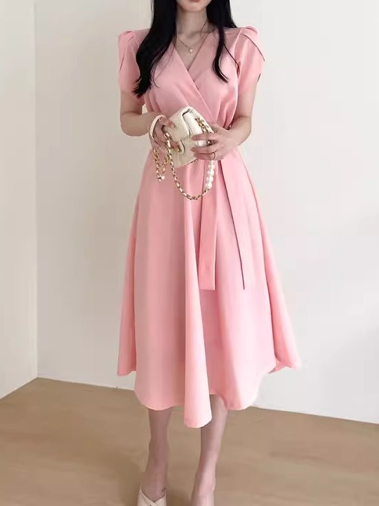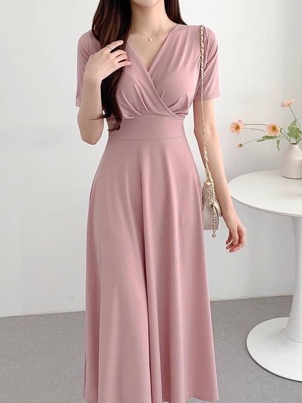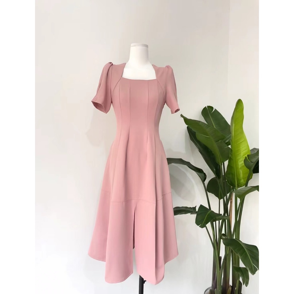 elegant plain light pink midi dress semi formal for plus size woman civil wedding guest casual debut