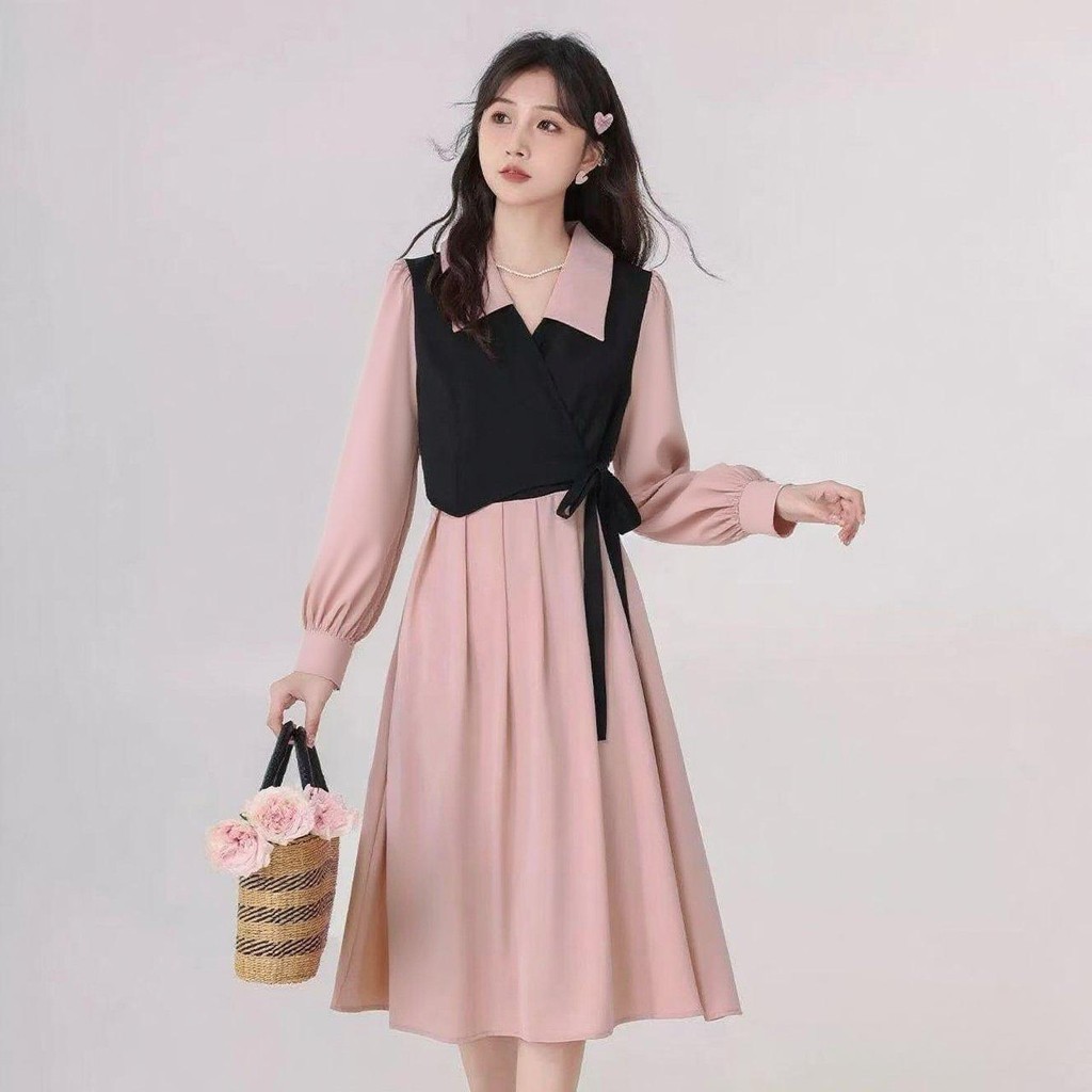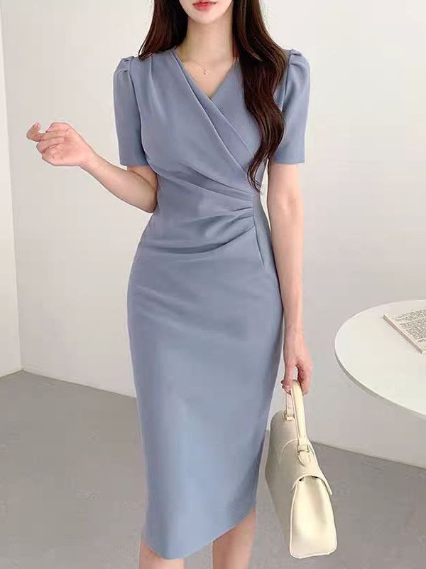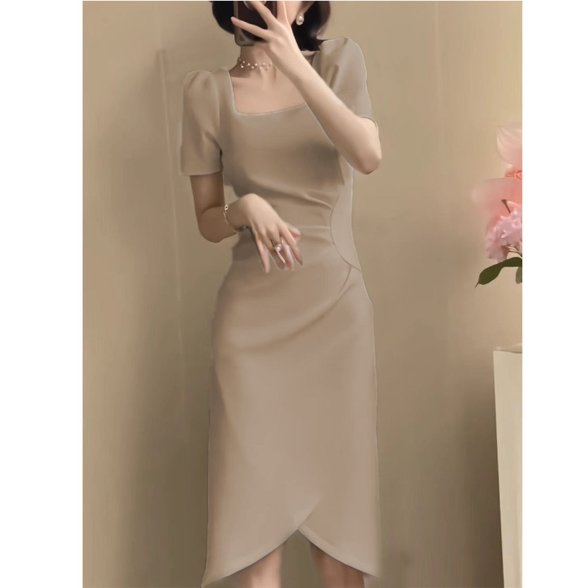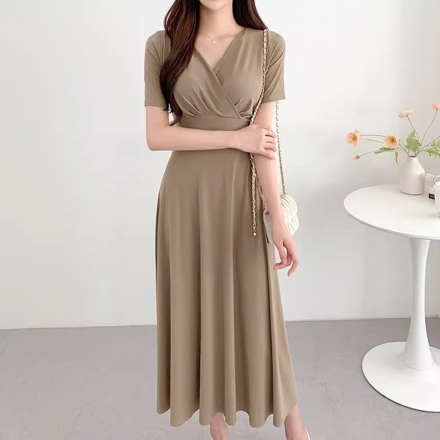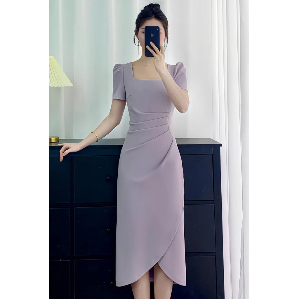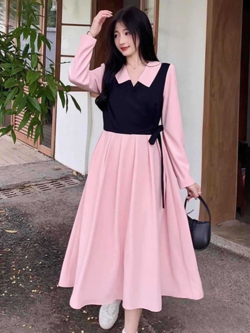 elegant plain light pink midi dress semi formal for plus size woman civil wedding guest casual debut