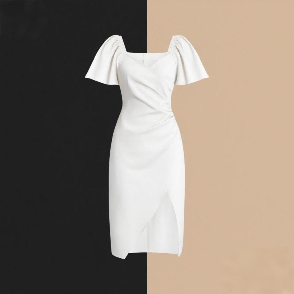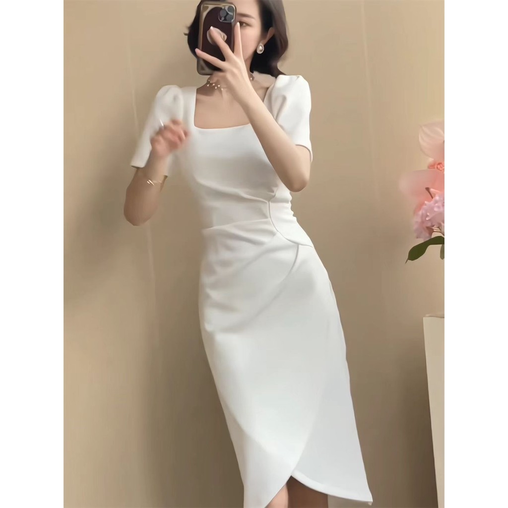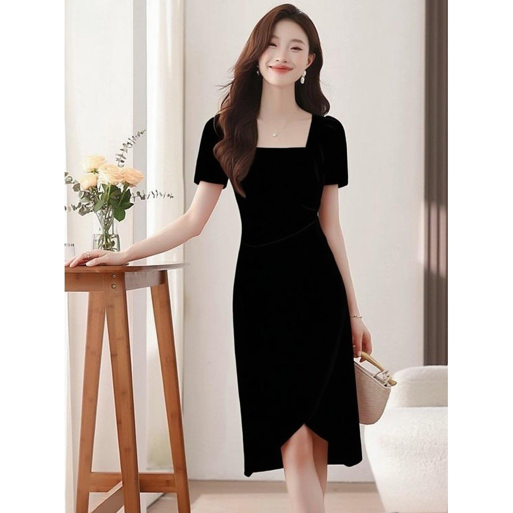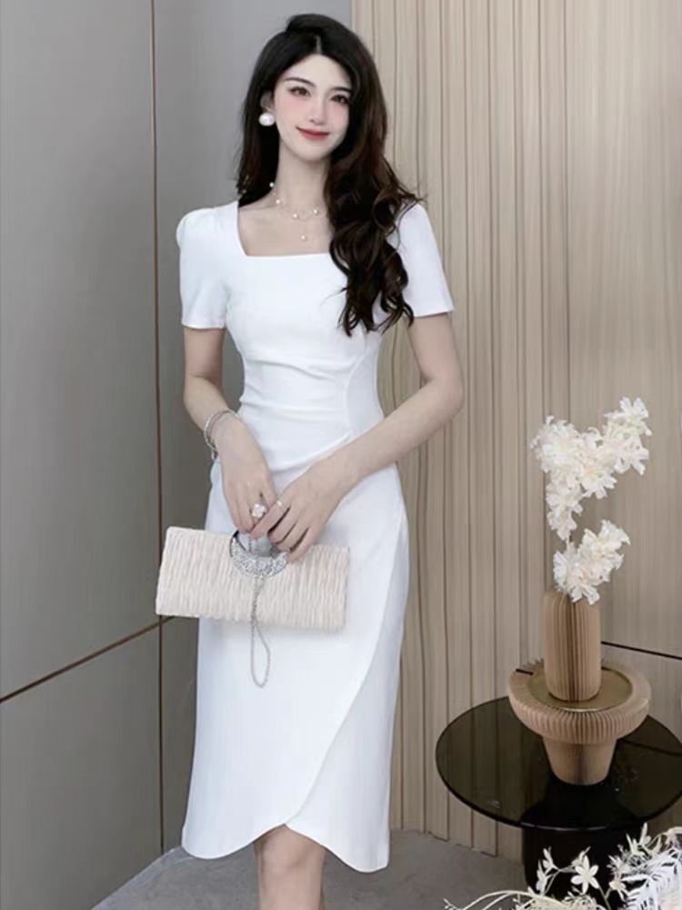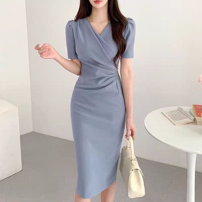 elegant plain light pink midi dress semi formal for plus size woman civil wedding guest casual debut