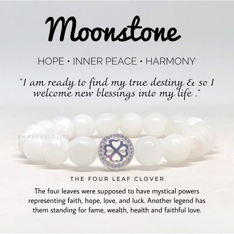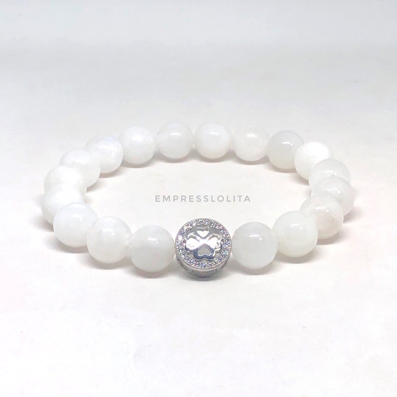 empresslolita Authentic MOONSTONE with Four Leaf Clover Charm Braclet