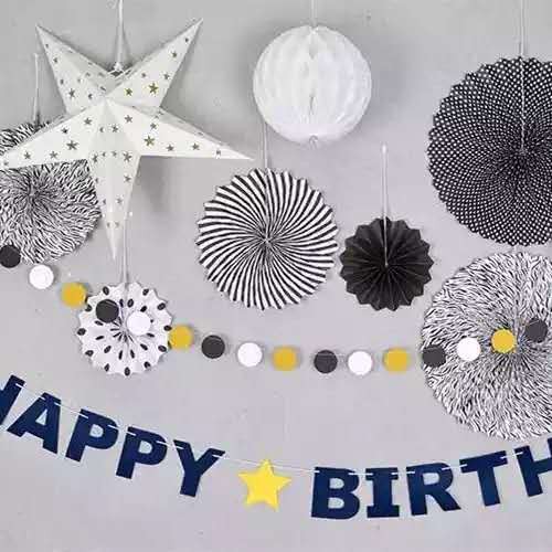 fan set 6 in 1 Black colour Paper fan flower decoration set birthday party Anniversary