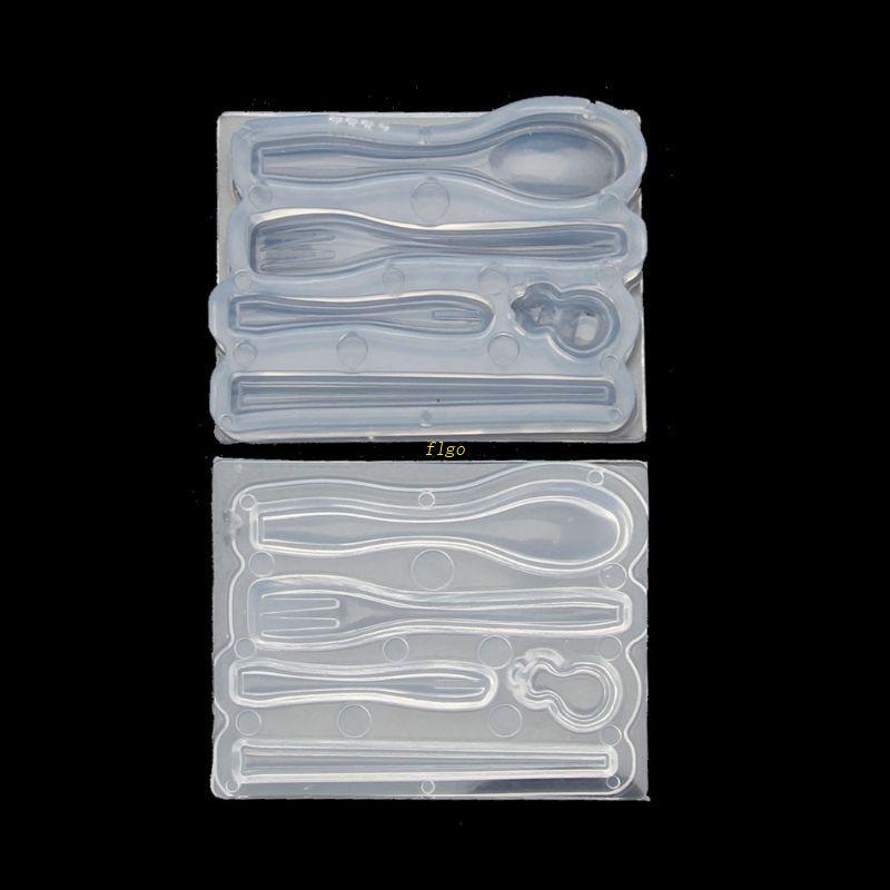 flgo 1 Set Mini Chopsticks Spoons Forks Resin Silicone Mold Epoxy Resin Jewelry Tools