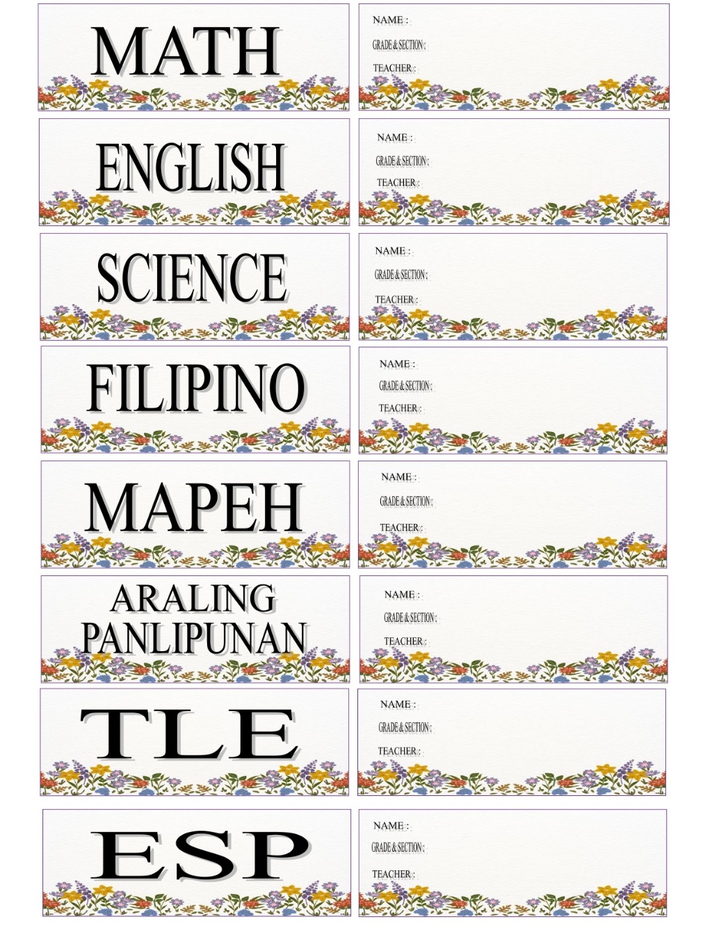 flower style subject and name sticker set