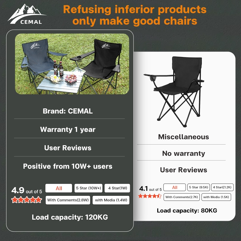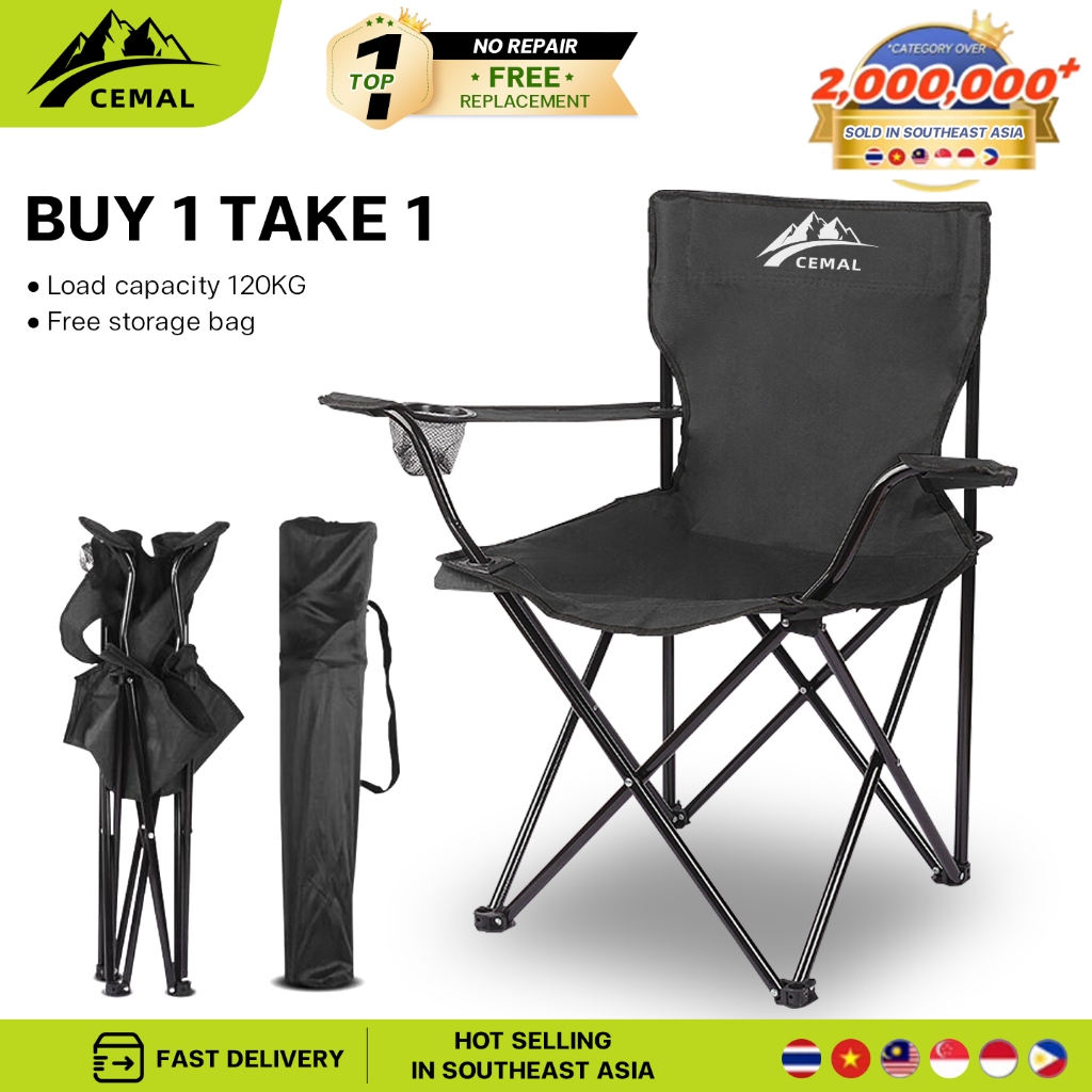 【CEMAL】Folding chair camping chair with portable table foldable chair picnic and gathering beach