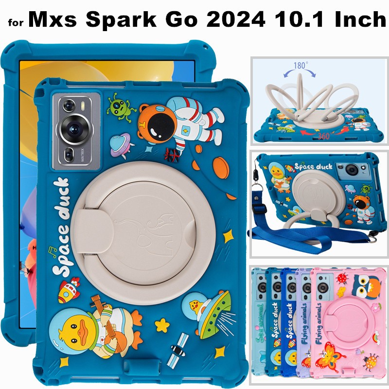for Mxs Spark Go Tablet 10.1 Inch 360 Degree Rotating Cute Cartoon Shockproof Soft Silicone Protective Sleeve Stand Cover