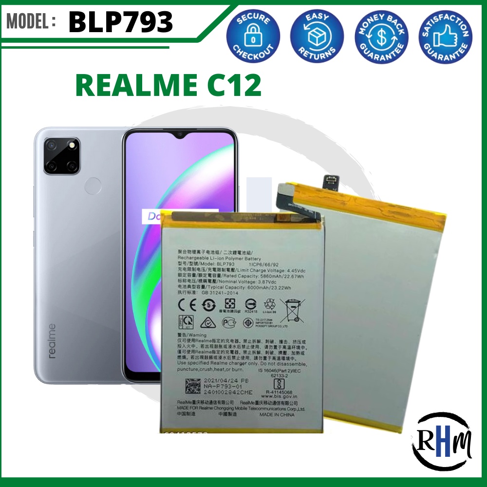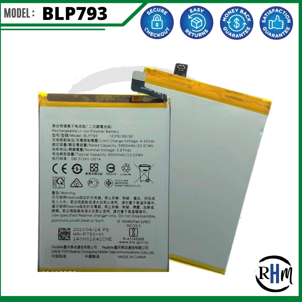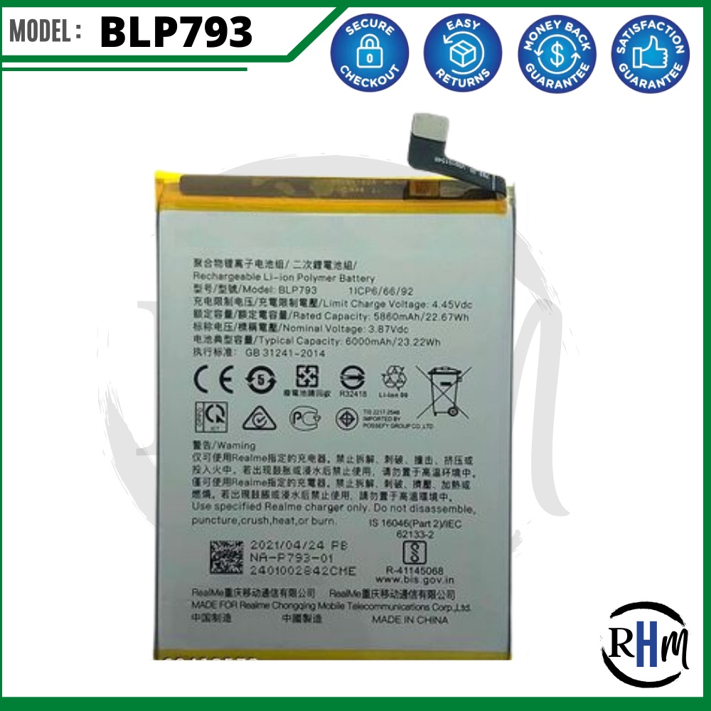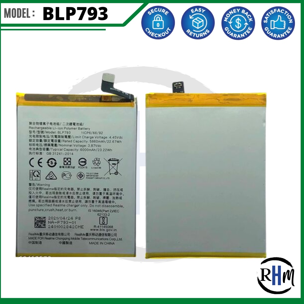 for REAL ME C25 Battery, Model: BLP793 (6000mAh) Original High Quality Battery