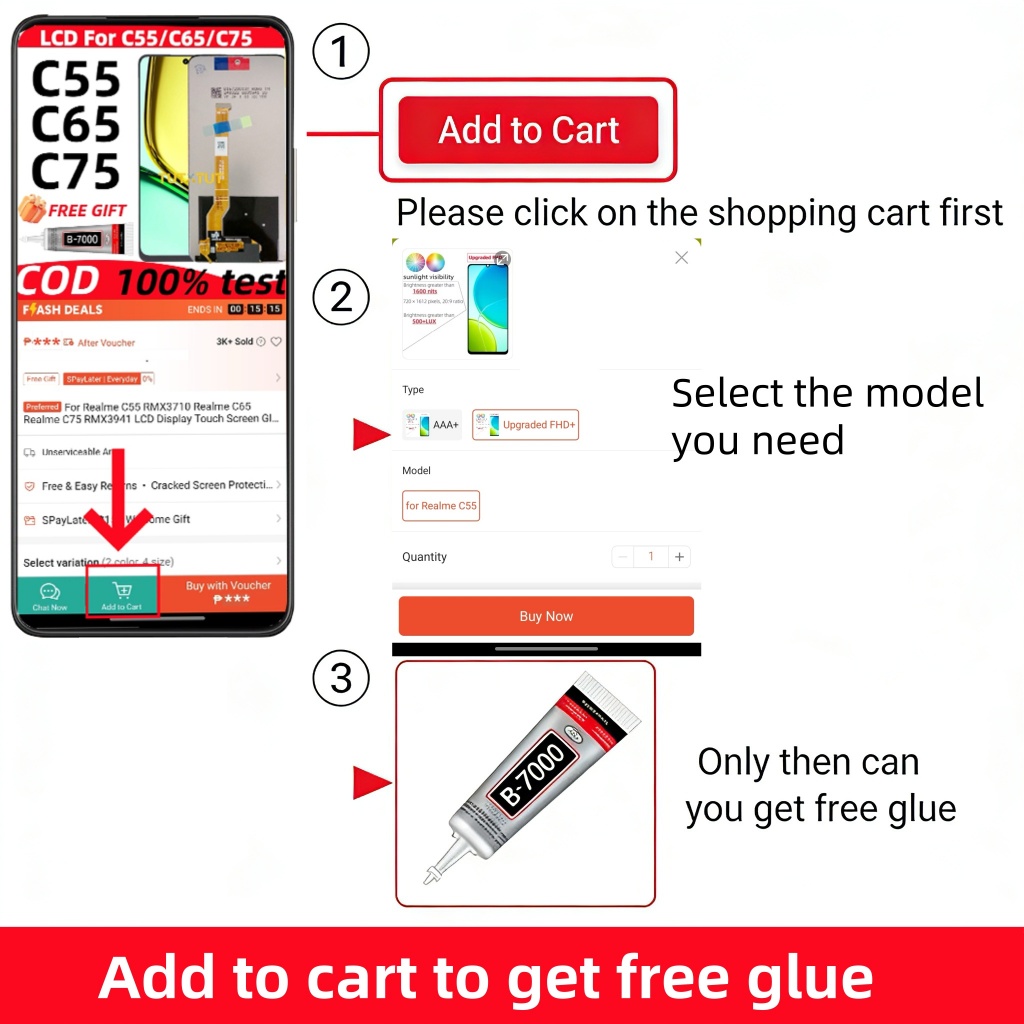 for Realme C21Y RMX3261 RMX3263/ C25Y RMX3265 LCD Display Touch Screen Glass Digitizer Assembly Replacement LCD Screen Spare Parts