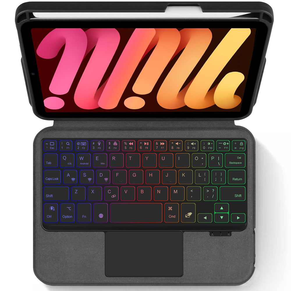 for iPad Mini 7 Keyboard Case,One-Piece 120 Degree Adjustable Kickstand Leather Case with Trackpad Backlight Bluetooth Keyboard for iPad Mini 7th Generation 2024/Mini 6th 2021