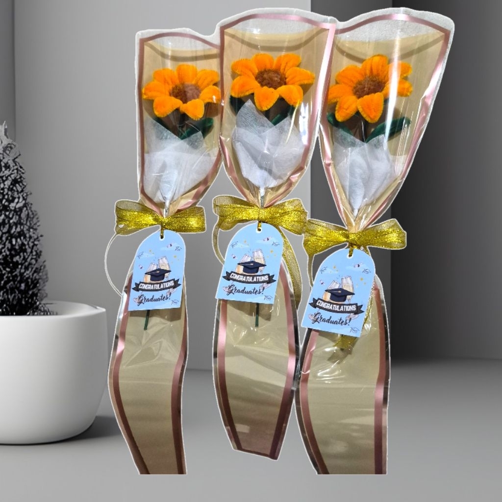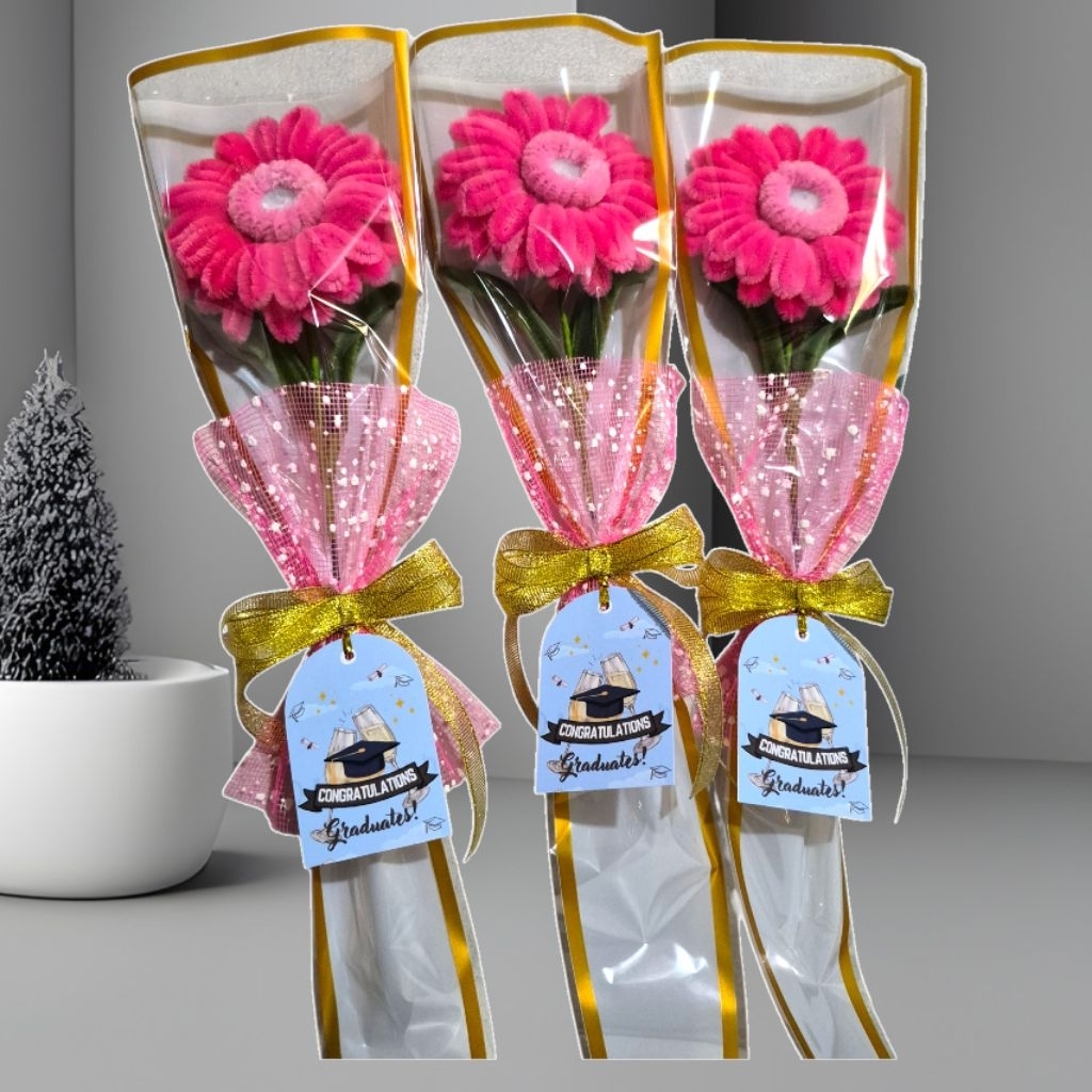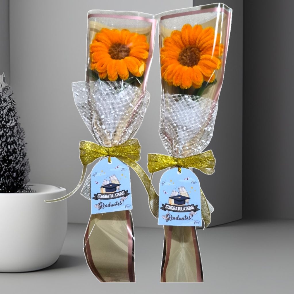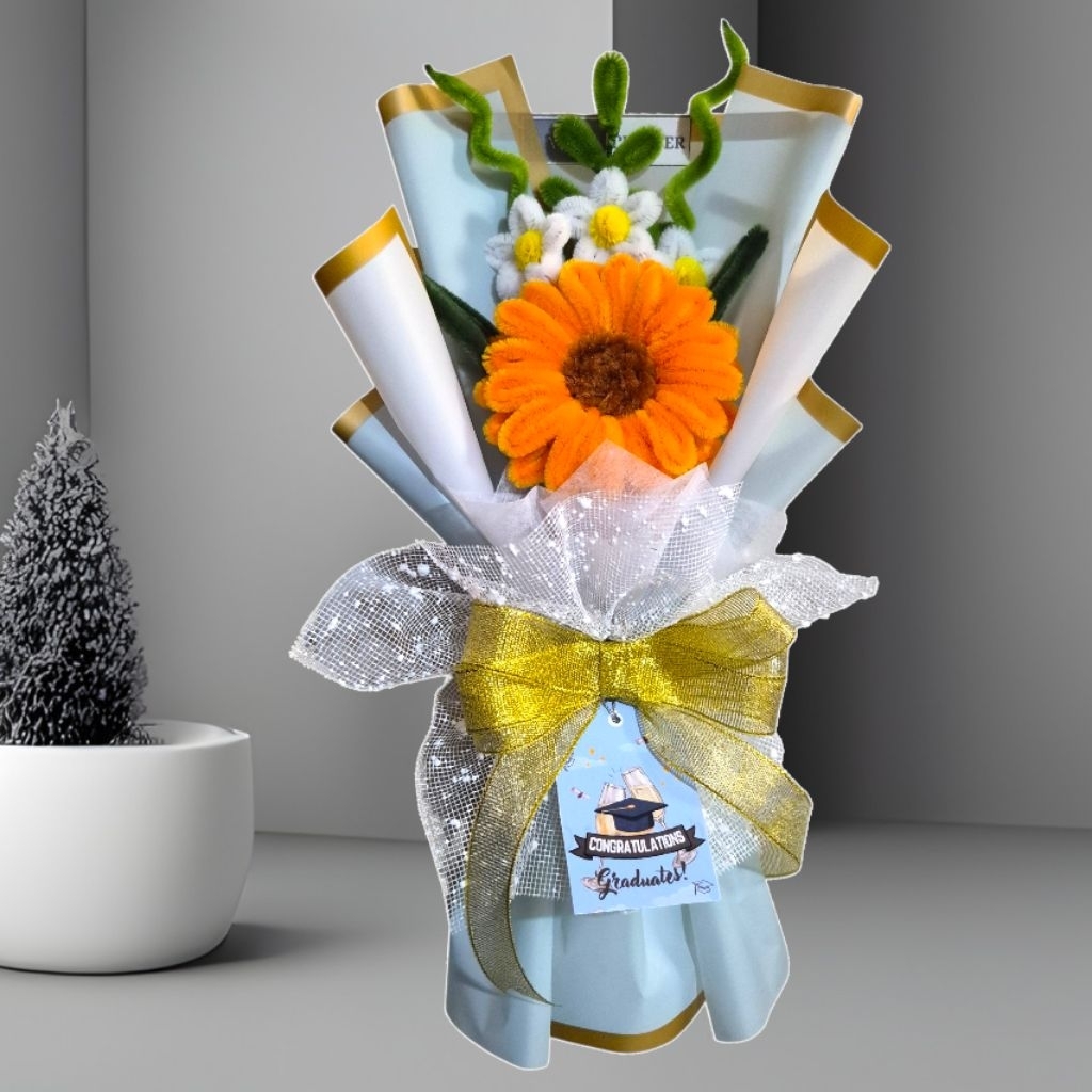 Daddy Crafter ,Graduation gift ideas, Fuzzy wire flower,Sunflower/Rose/Gerbera/Tulip mini Bouquet