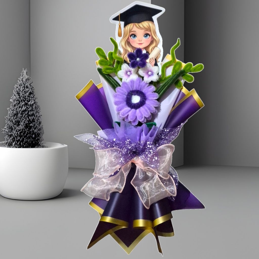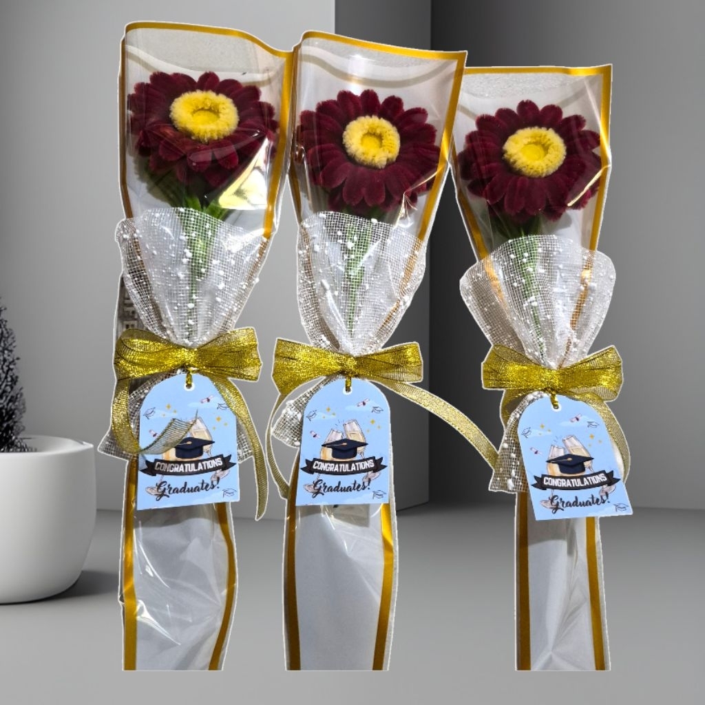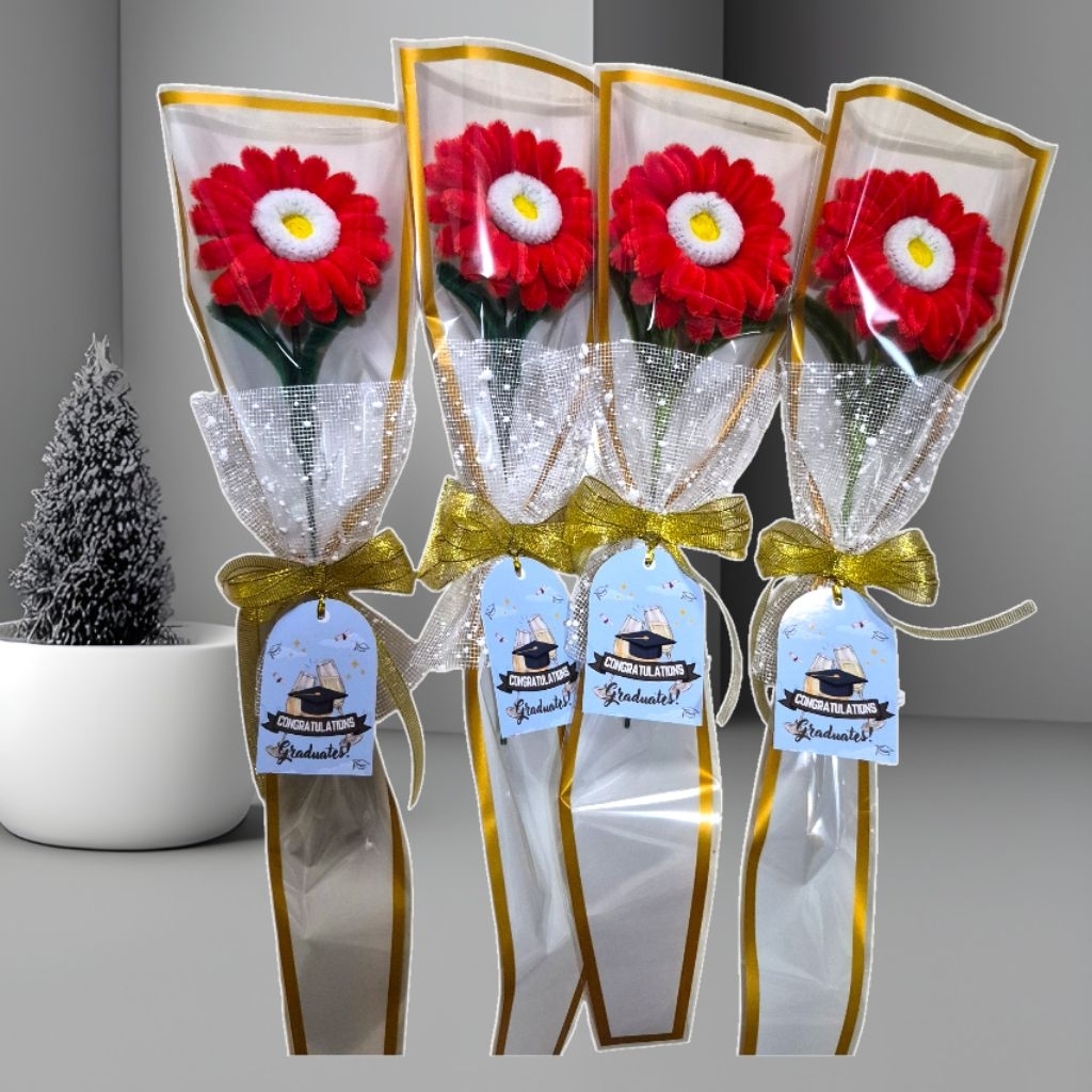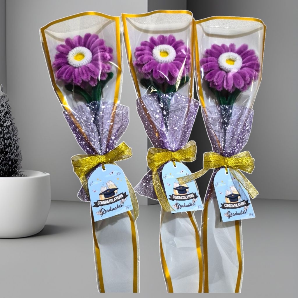 Daddy Crafter ,Graduation gift ideas, Fuzzy wire flower,Sunflower/Rose/Gerbera/Tulip mini Bouquet