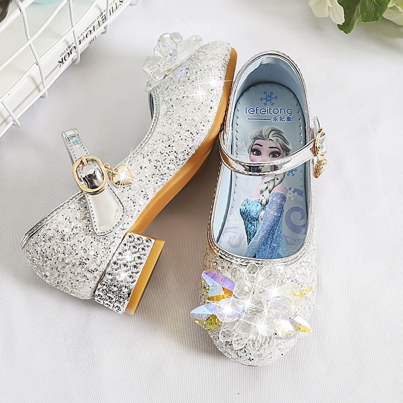 girls high heels spring new children Frozen Princess elsa crystal shoes kids show shoes Crystal casual shoes sequins