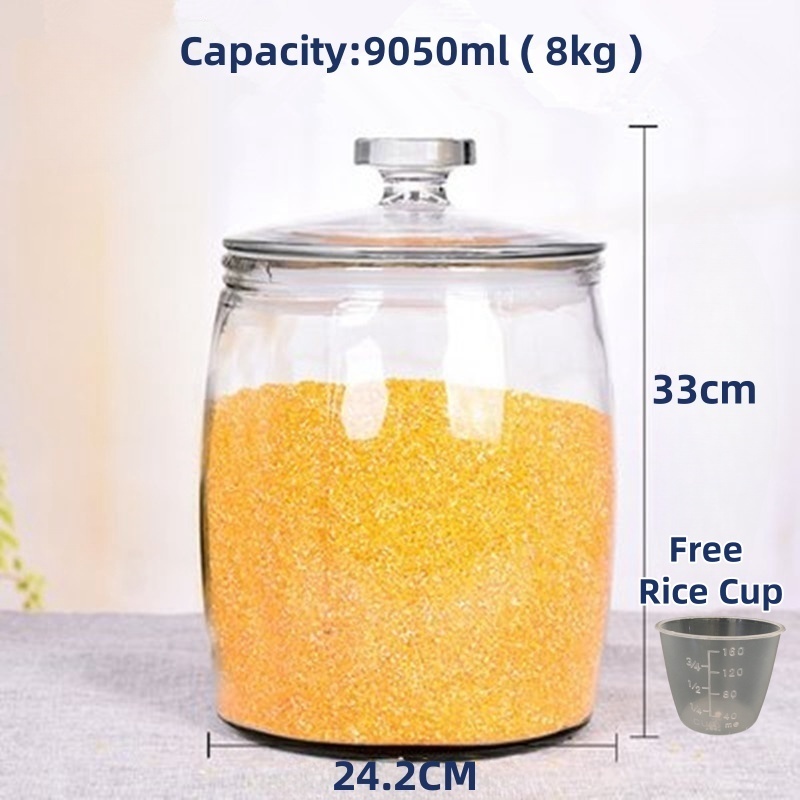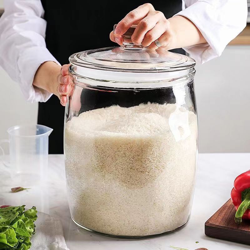 glass rice dispenser 10 kilos/10kg rice storage container airtight large jars container with lid