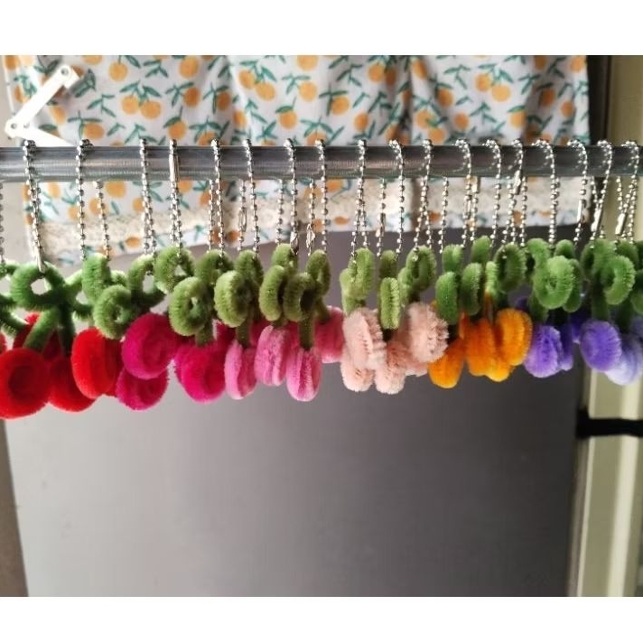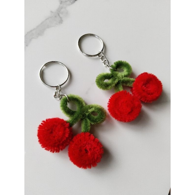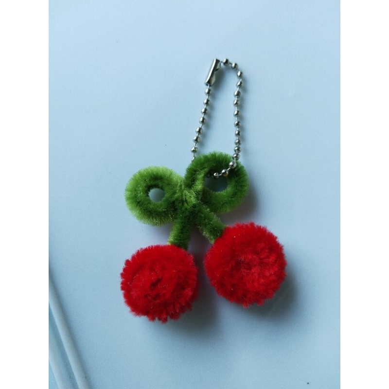 artist_clarize| handmade cherry keychain fuzzy wire