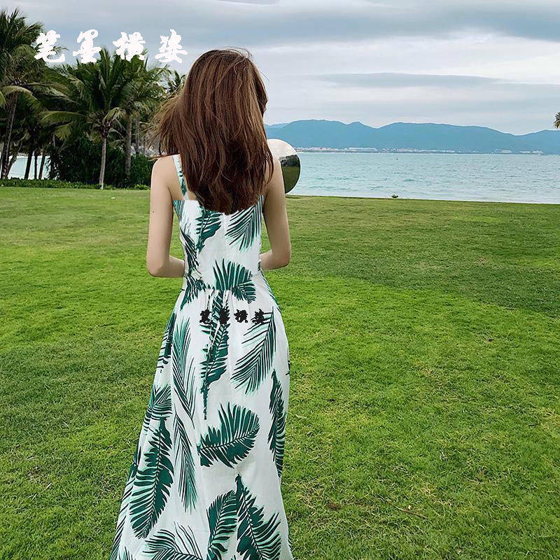 hawaiian dress for women beach dress summer outfit women beach 2021 Spring Autumn and Summer suspender skirt A -line dress in a long dress, a holiday beach skirt, large size women'