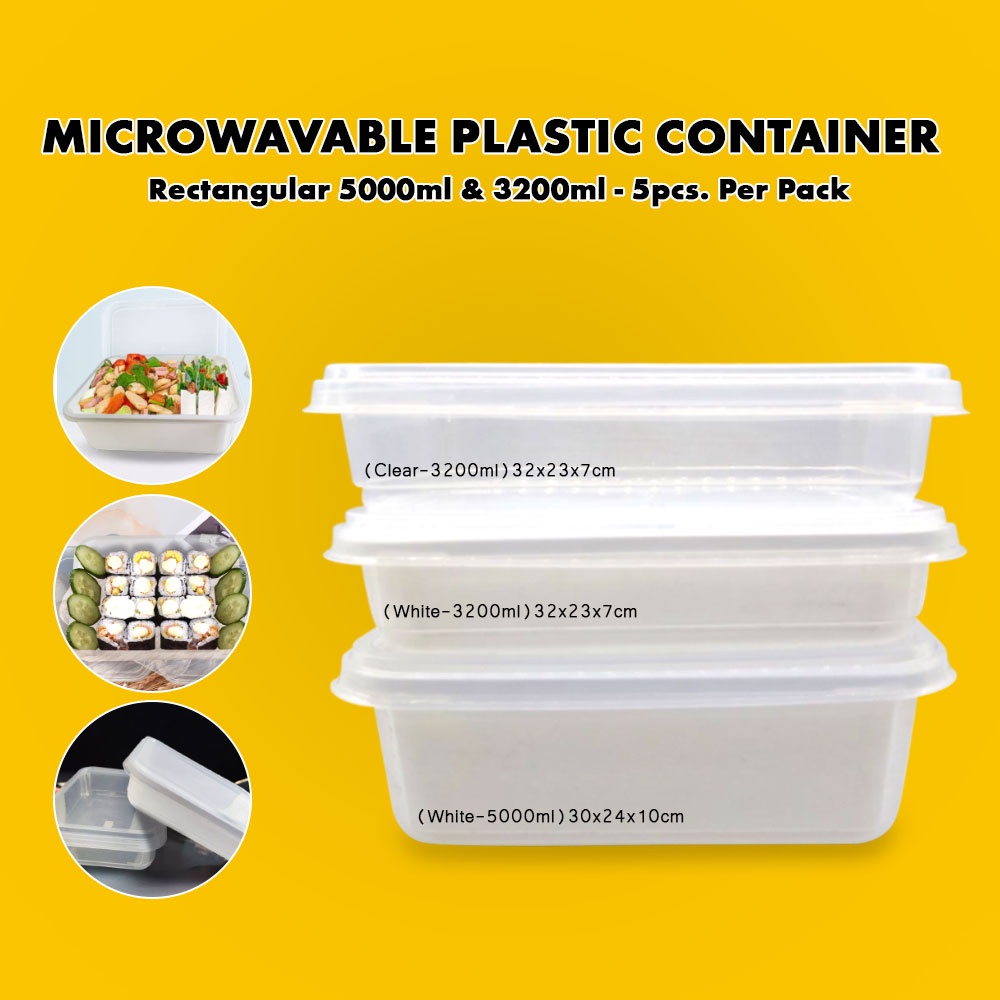 homeflixph Microwavable Plastic Container Rectangular - 5pcs. Per Pack