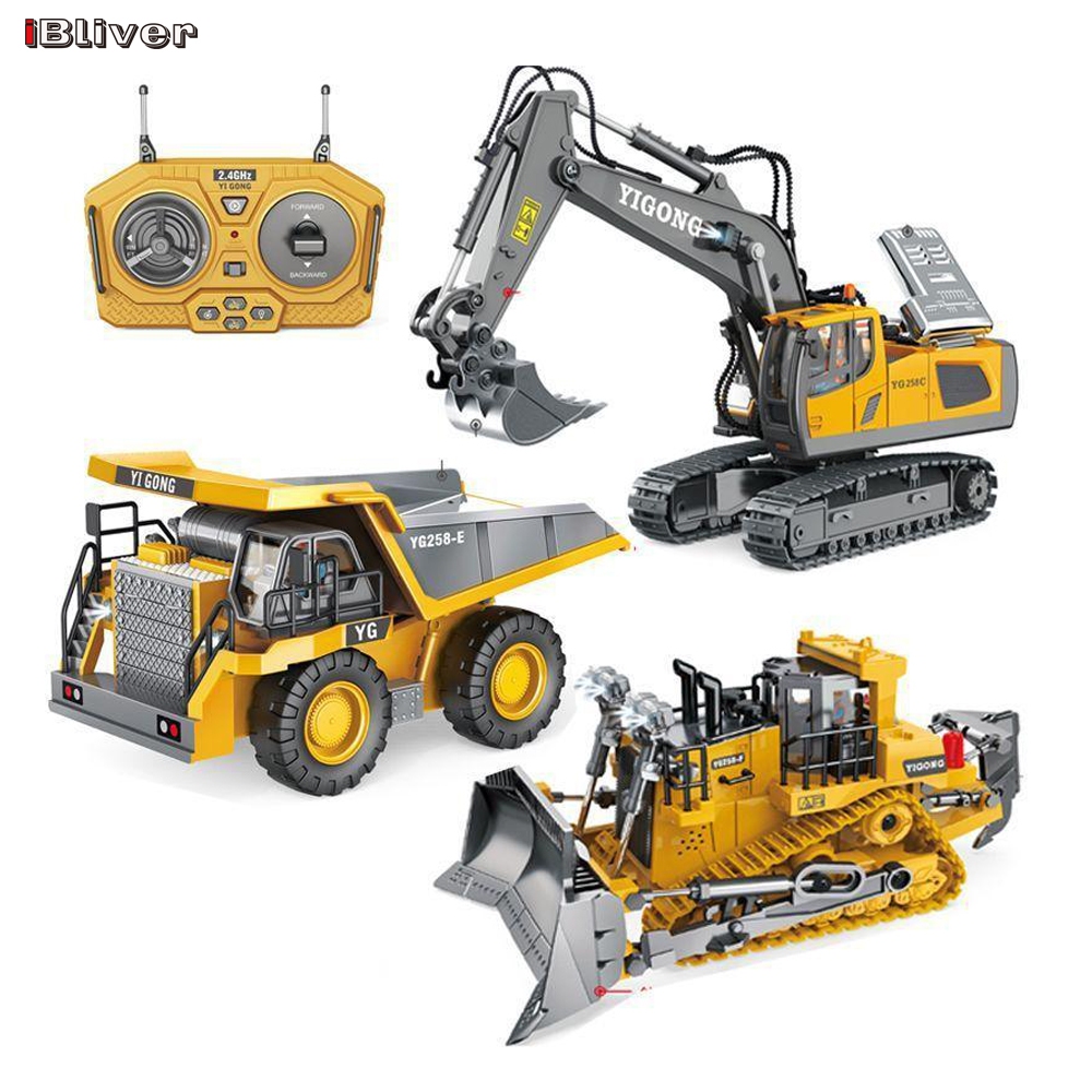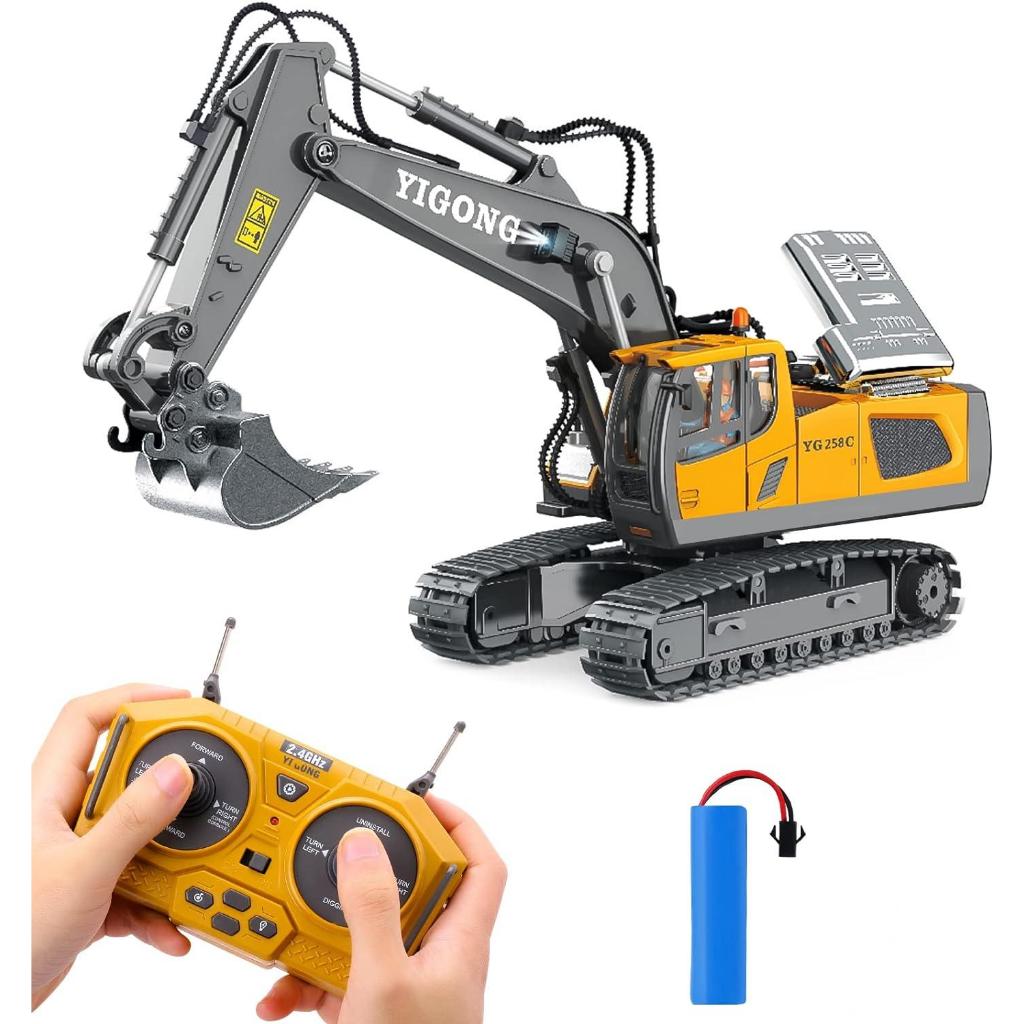 iBLiver Remote Control Excavator Toys for Boys, Remote Control Construction Vehicles Toy Metal Shovel RC Truck, 2.4GHZ Light and Sound RC Excavators with 9 Channel Batteries