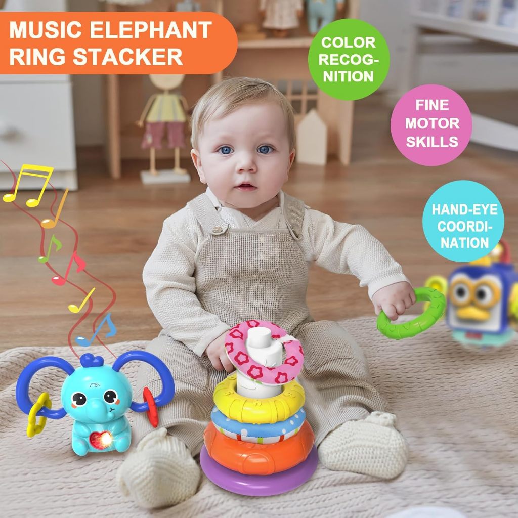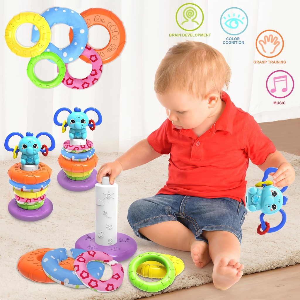 iBliver Rainbow Stacking Rings, Baby Toy,Sound and Light Rings, Girl Baby Stacking Toy, Colorful Ring Stacker, Sensory Rainbow Rings, Interactive Baby Toy with Sounds