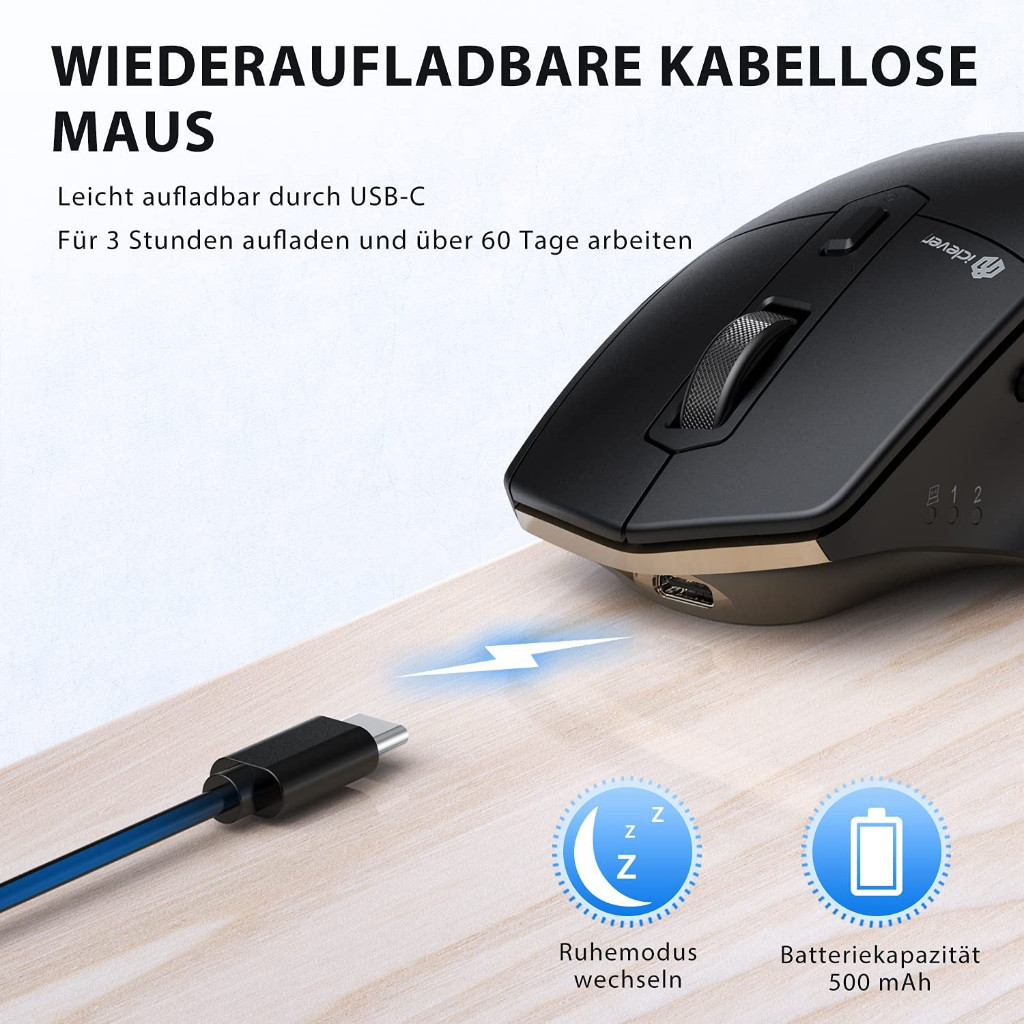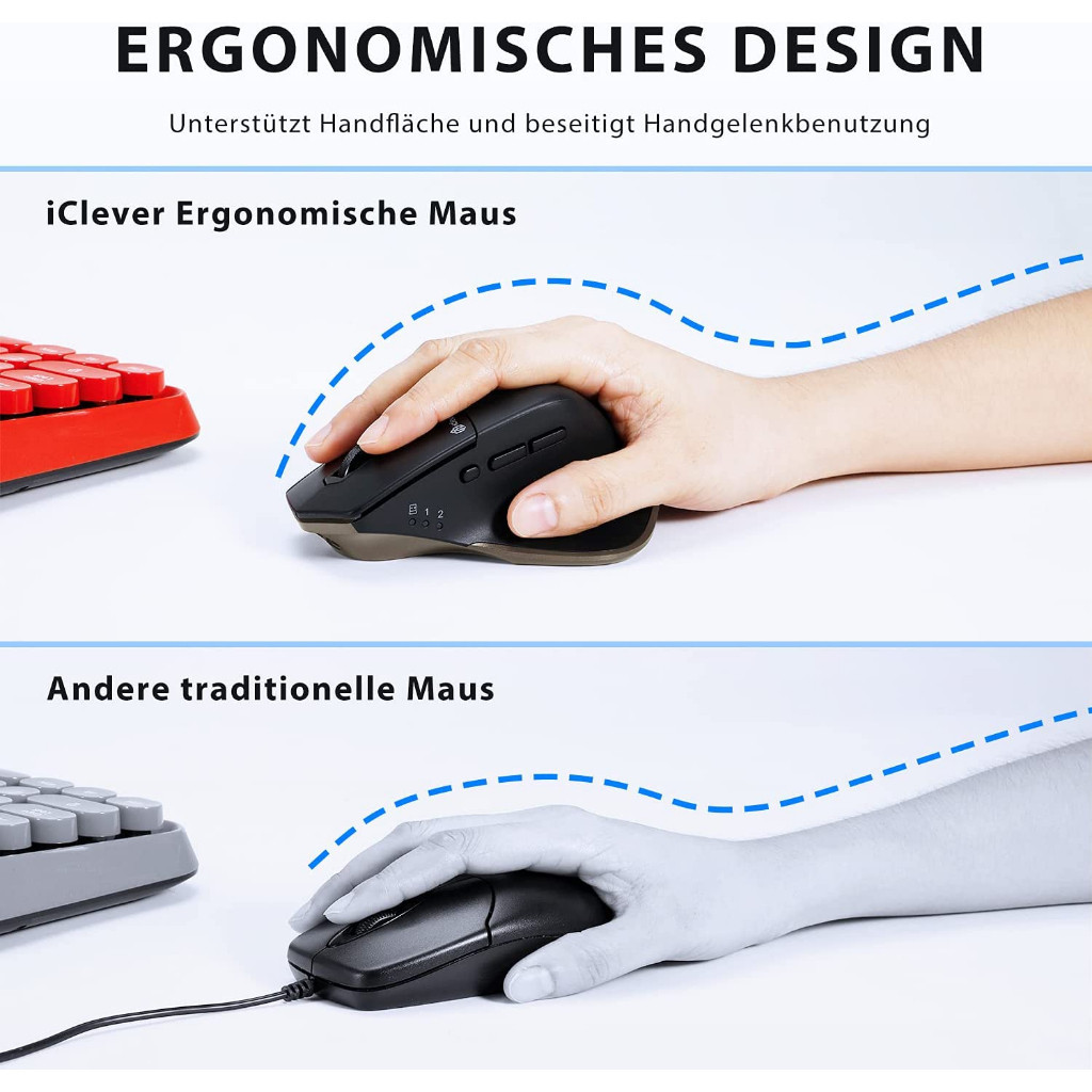 iClever Bluetooth Mouse, Rechargeable Ergonomic Mouse, Wireless Mouse, Rechargeable Battery, Multi-D